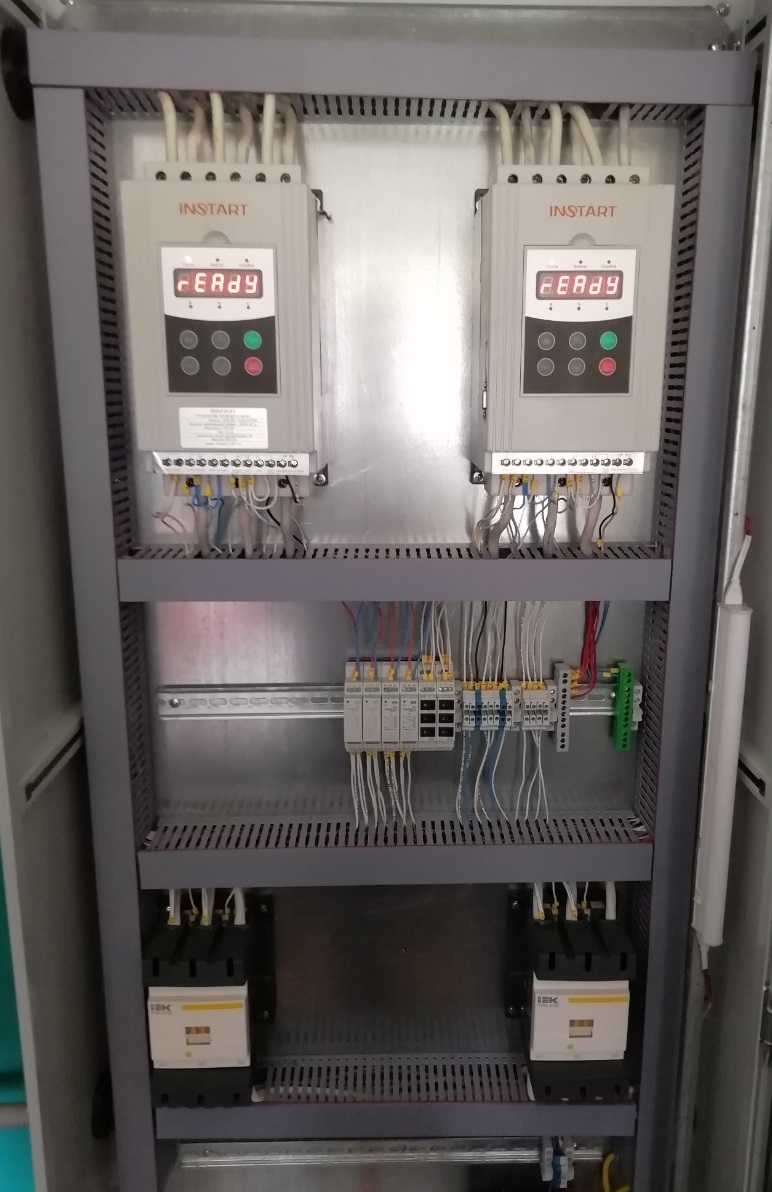 - Две независимые группы пусковых устройств (УПП/ПЧ/Прямой пуск), позволяющие осуществлять запуск любого из перекачивающих насосов.