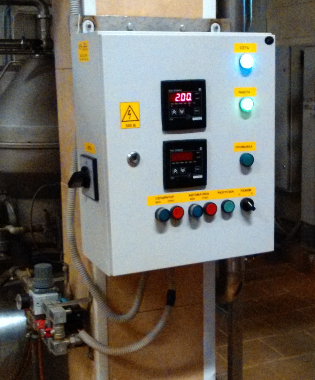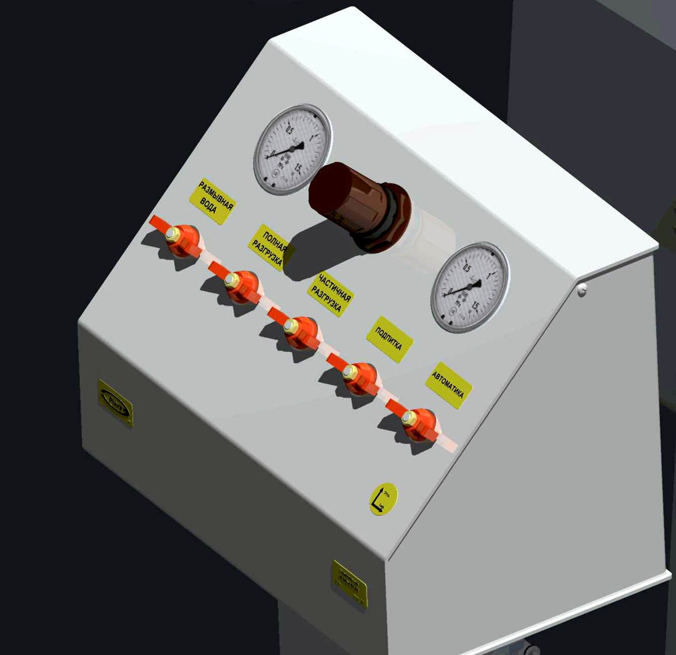Шкаф управления предназначен для управления приводом и автоматического управления циклом работы (по времени) гидравлической системы саморазгружающегося сепаратора с частичной выгрузкой осадка при непрерывном процессе сепарирования и безразборной промывке барабана,обеспечивая автоматическое управление электромагнитными клапанами на линиях подачи буферной воды и размывной воды при осуществлении процесса разгрузки.