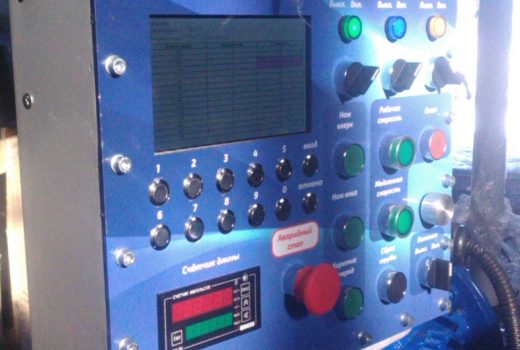 Оперативные параметры, такие как: толщина ленты (штрипса), диаметр трубы, длина трубы, корректировка длины трубы, количество труб партии теперь задаются путем ввода на первом экране графической панели оператора ОВЕН ИП320, расположенной на пульте управления. На втором экране графической панели оператора ИП320 отображаются оперативные параметры изготавливаемой партии: диаметр трубы, длина трубы и корректировка длины трубы, заданная длина трубы в импульсах и фактическое показание счетчика, заданное количество труб партии и сколько осталось сделать.