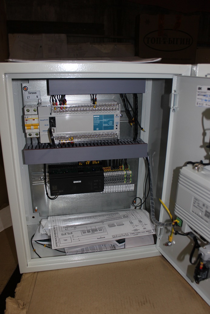 Система разработана на базе оборудования ОВЕН и состоит из пульта оператора и силового шкафа.
