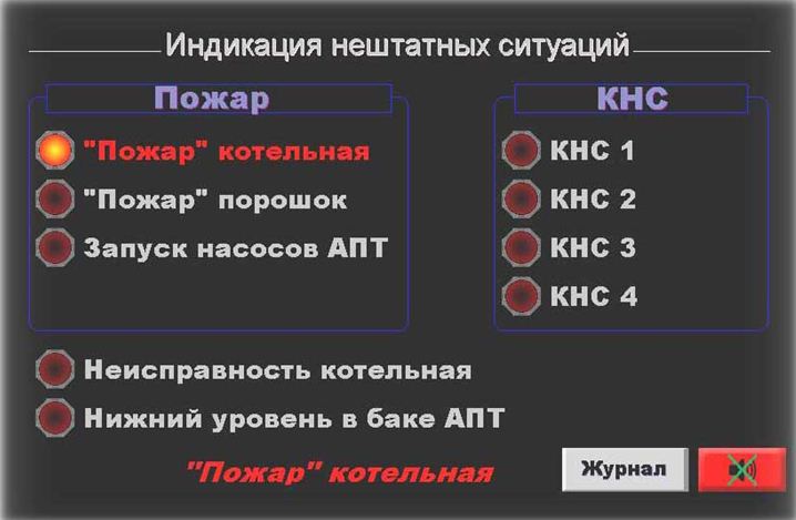 Также в системе реализована индикация сигналов предупреждения о пожаре в данных объектах.