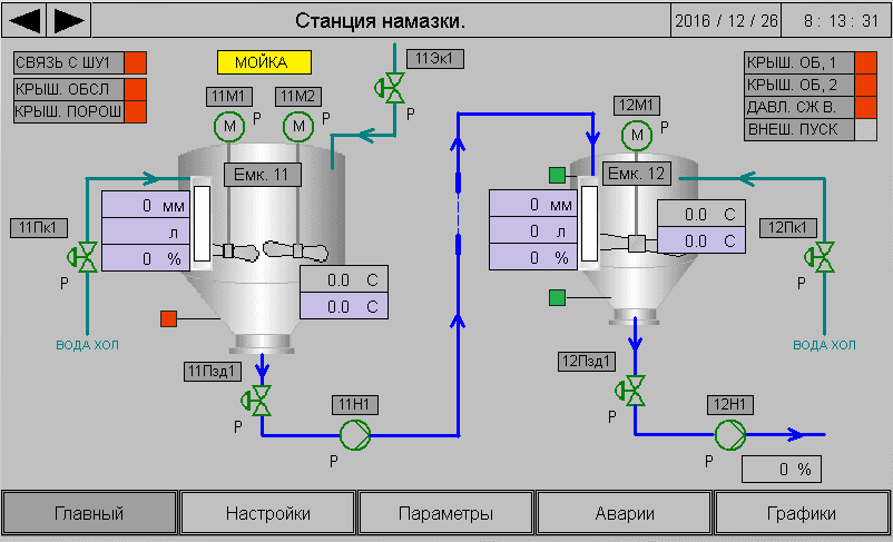 Система автоматического управления (САУ) предназначена для приготовления намазки, необходимой для кондитерского производства. САУ обеспечивает набор и смешивание компонентов. Осуществляется автоматическое или ручное дозирование в линию производства кондитерских изделий. Также реализован режим мойки оборудования.