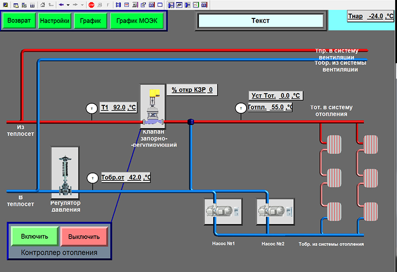 Система управления и диспетчеризации отоплением и вентиляцией обеспечивает: