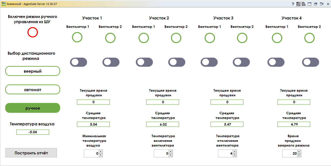 Данные по работе установки активной вентиляции сохраняются в базе и доступны для дальнейшего анализа с помощью встроенных средств отчетности.