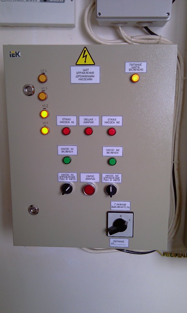 Щит управления насосами выполнен на базе программного реле ПР-110. Функции щита управления насосами КНС.