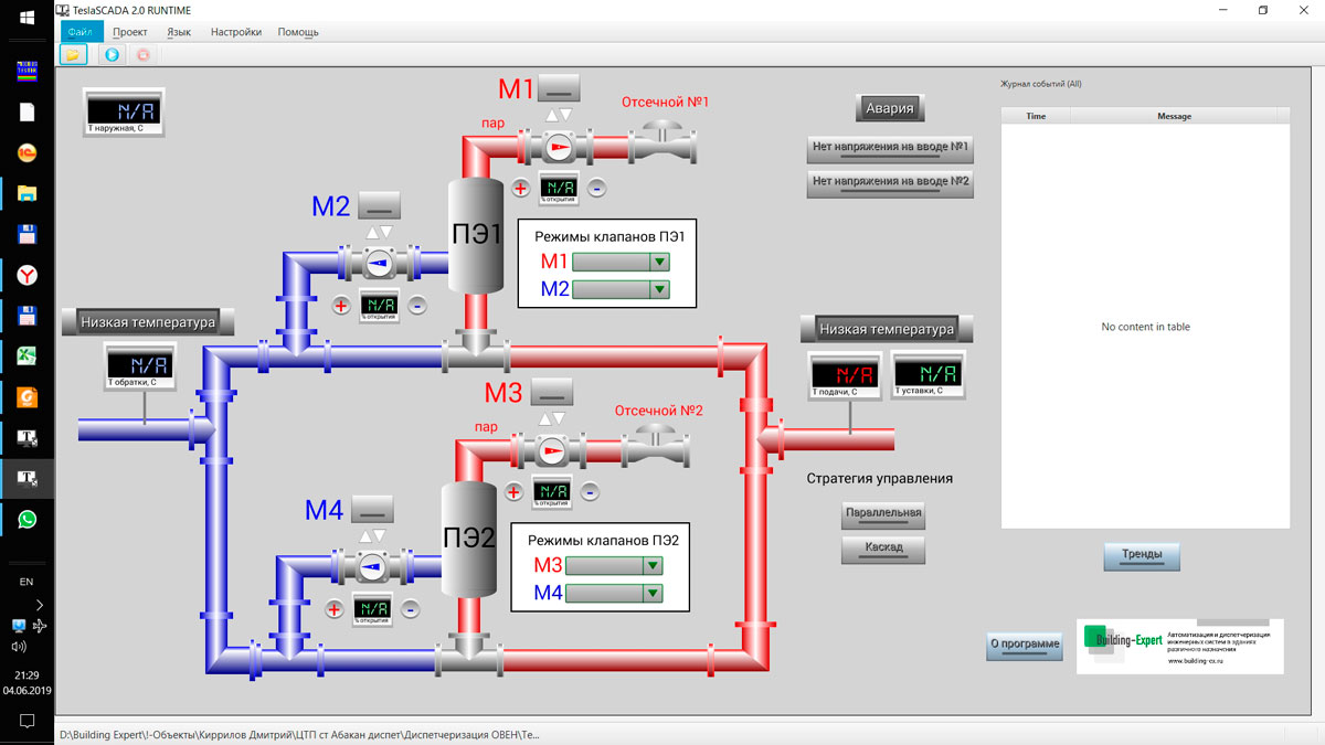 Вся основная информация по работе пароэжекторов и режимы управления работой регулирующих клапанов выведены на экран диспетчера.