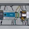 Диспетчерский пункт на станции водозабора был ликвидирован и перенесен в здание котельной, а функции наблюдения за работой возложены на оператора котельной. В диспетчерской установлены компьютер и шкаф управления с контроллером ПЛК100 (рис. 1). Контроллер подключен к ПК посредством Ethernet.
