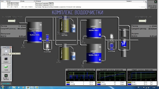 Рисунок 2. Основной экран – главный экран оперативного контроля комплекса водоочистки