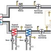 Еще одной особенностью этой системы является наличие рекуператора, то есть теплообменника. Его применение позволяет значительно снизить (до 30 % от расчетных) предельные мощности калориферов и нагревателей, что приводит к экономии средств, как при монтаже, так и при эксплуатации. В некоторых системах перед рекуператором требуется установка байпаса, управляемого задвижкой. Необходим он в двух случаях. Во-первых, при низких температурах наружного воздуха существует опасность обмерзания рекуператора. Чтобы избежать этого, на рекуператор ставится специальное реле давления, открывающее байпас. Во-вторых – происходит компенсация потери мощности рекуператора при предельных условиях работы нагревателя-холодильника. Байпас рекуператора открывается, если величина регулятора достигает некоего предельного значения, хотя на некоторых системах были установлены плавно регулируемые приводы заслонки байпаса рекуператора, связанные с выходом регулирования температурой приточного воздуха.