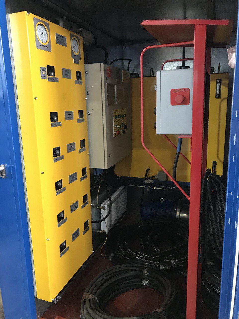 Гидравлическая станция управления с комплектом противовыбросового оборудования предназначена для оперативного дистанционного управления превенторами и коллекторными клапанами с целью герметизации устья скважины. Это необходимое оборудование для предотвращения выбросов при бурении или ремонте скважин в нефтегазовой промышленности. Комплекс является неотъемлемой частью буровой установки и играет важную роль в разработке и освоении месторождения. Данное оборудование является аварийным, поэтому к качеству комплектующих и бесперебойной работе автоматизированной системы управления предъявляются повышенные требования безопасности. Станция обеспечивает бесперебойную подачу рабочей жидкости в гидроприводы противоперегрузочного оборудования и поддержание требуемого давления рабочей жидкости.