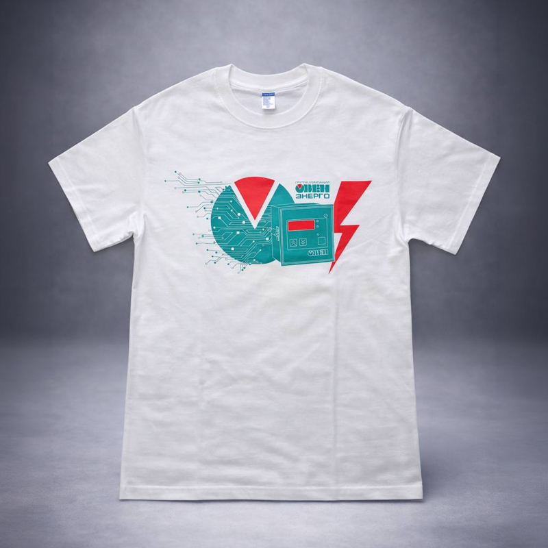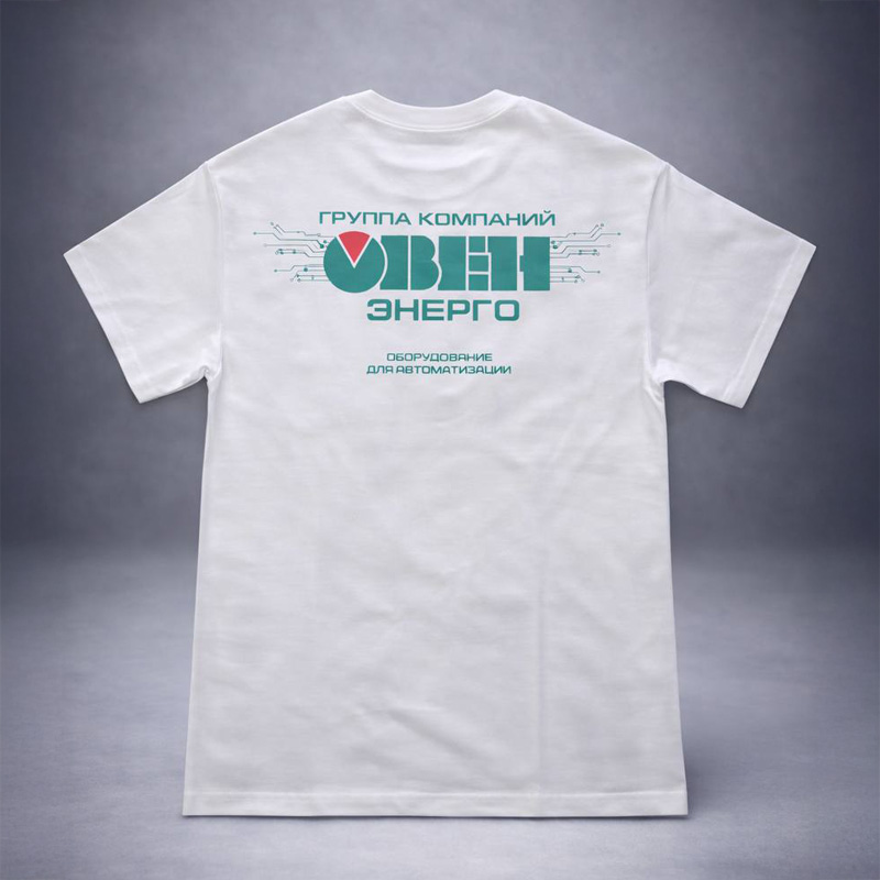 Удобная хлопковая футболка с фирменным логотипом. Подходит для работы, выставок и повседневной носки.