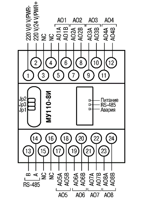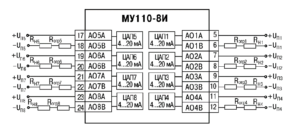 МУ110 модули аналогового вывода (AO)