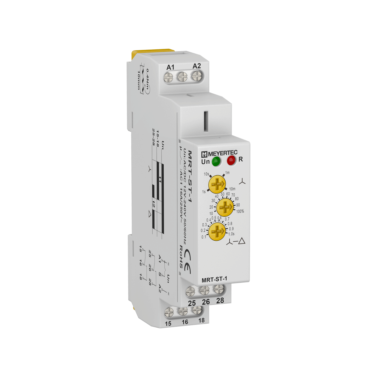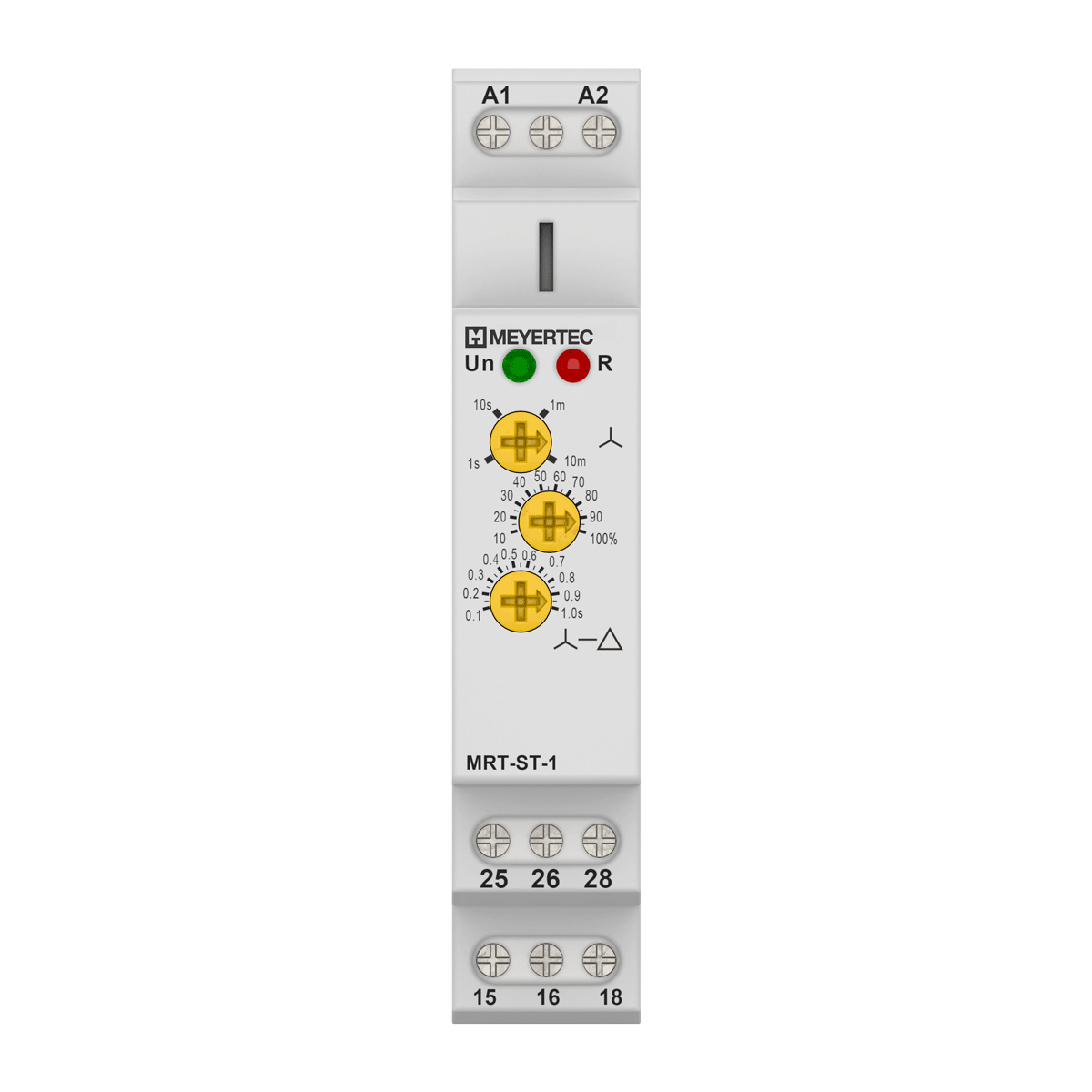 Реле времени MRT-ST-1 предназначены для управления работой трехфазных двигателей путем задержки переключения между режимами "звезда" и "треугольник". Используются для плавного пуска двигателей конвейеров, компрессоров, насосов, вентиляторов и т.д.