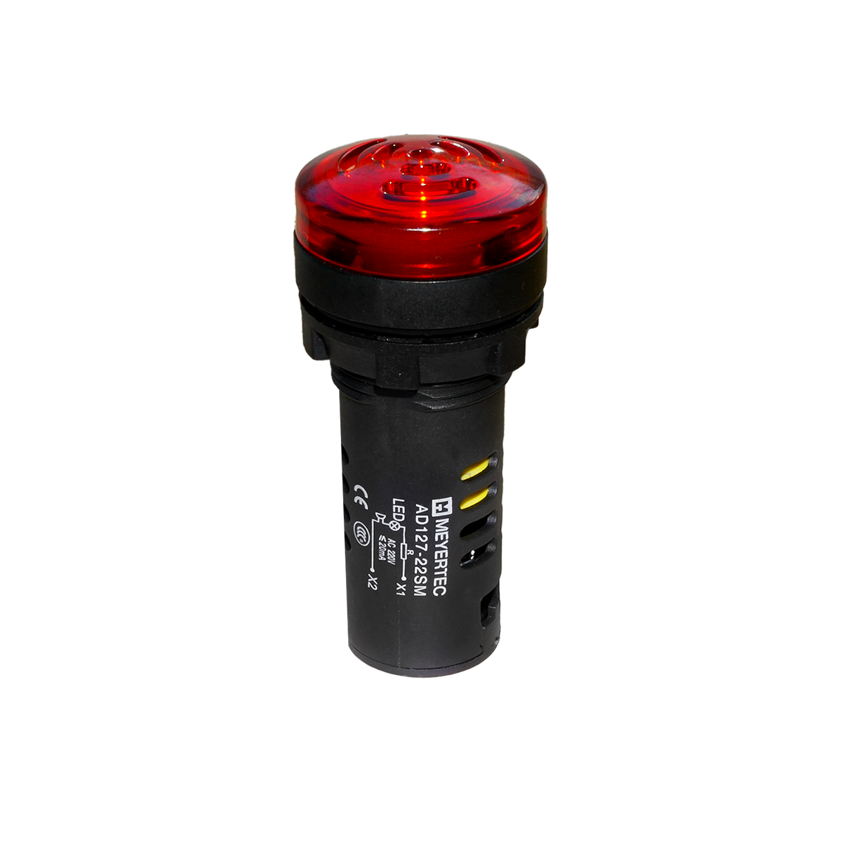 Зуммер с подсветкой, 80дБ, красный, 220V AС, IP65, пластик