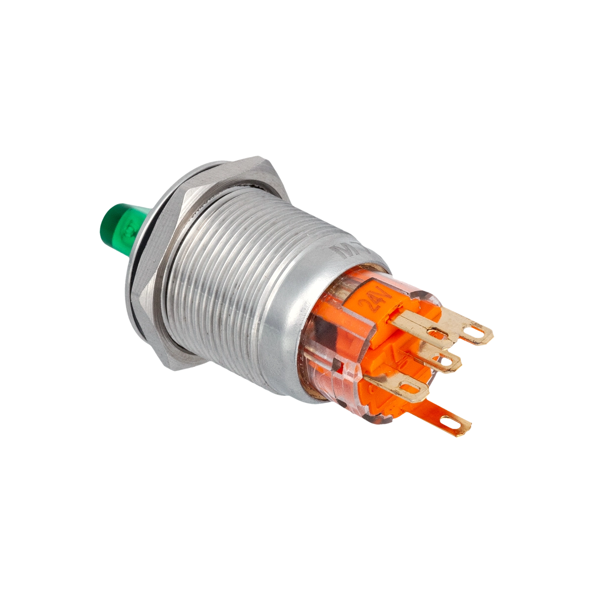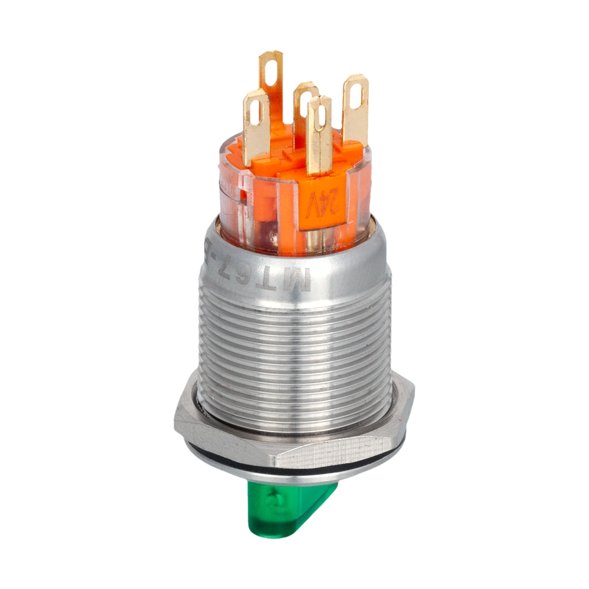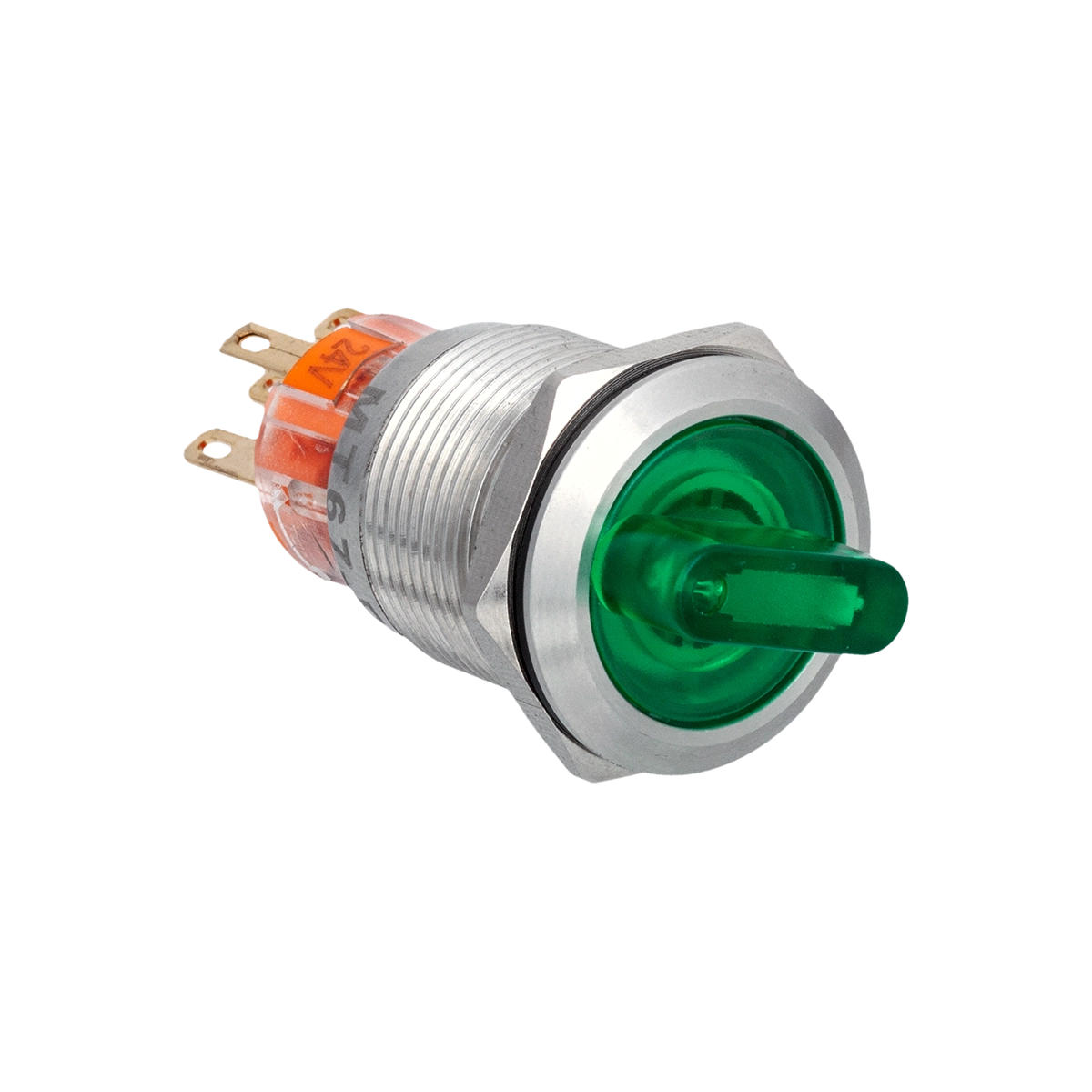 Переключатель с подсветкой, с фиксацией, 24V AC/DC, зеленый, 2 положения, 1NO+1NC, IP67, нержавеющая сталь