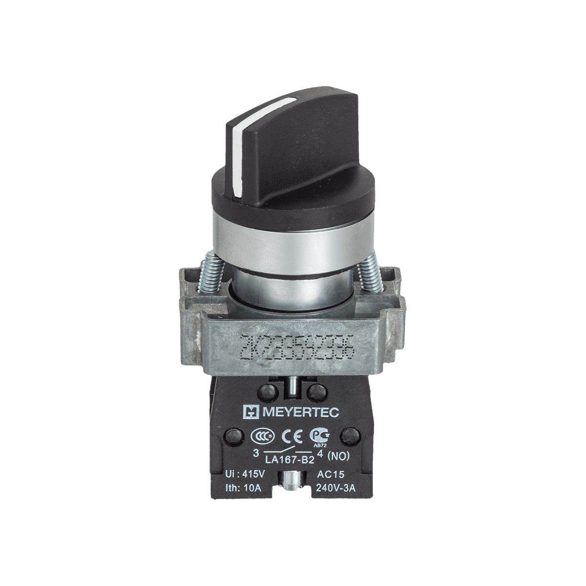 Переключатель на 2 положения с фиксацией, короткая ручка, 1NO, IP67, металл