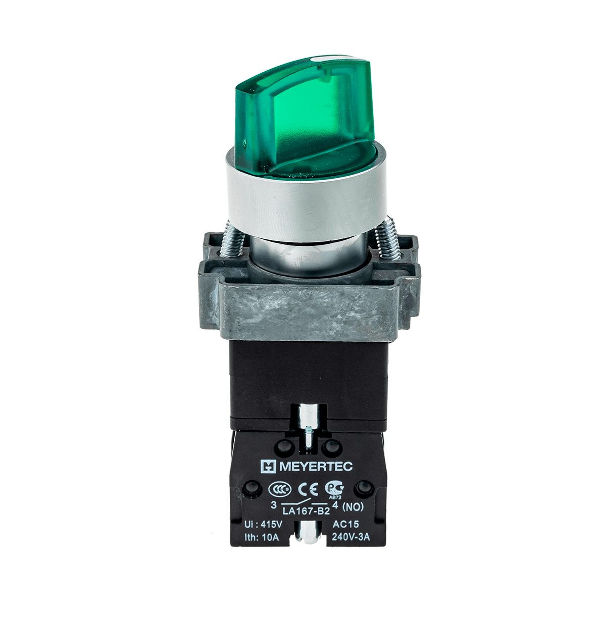 Переключатель с подсветкой, с фиксацией, 220V AC/DC, зеленый, 2 положения, 1NO