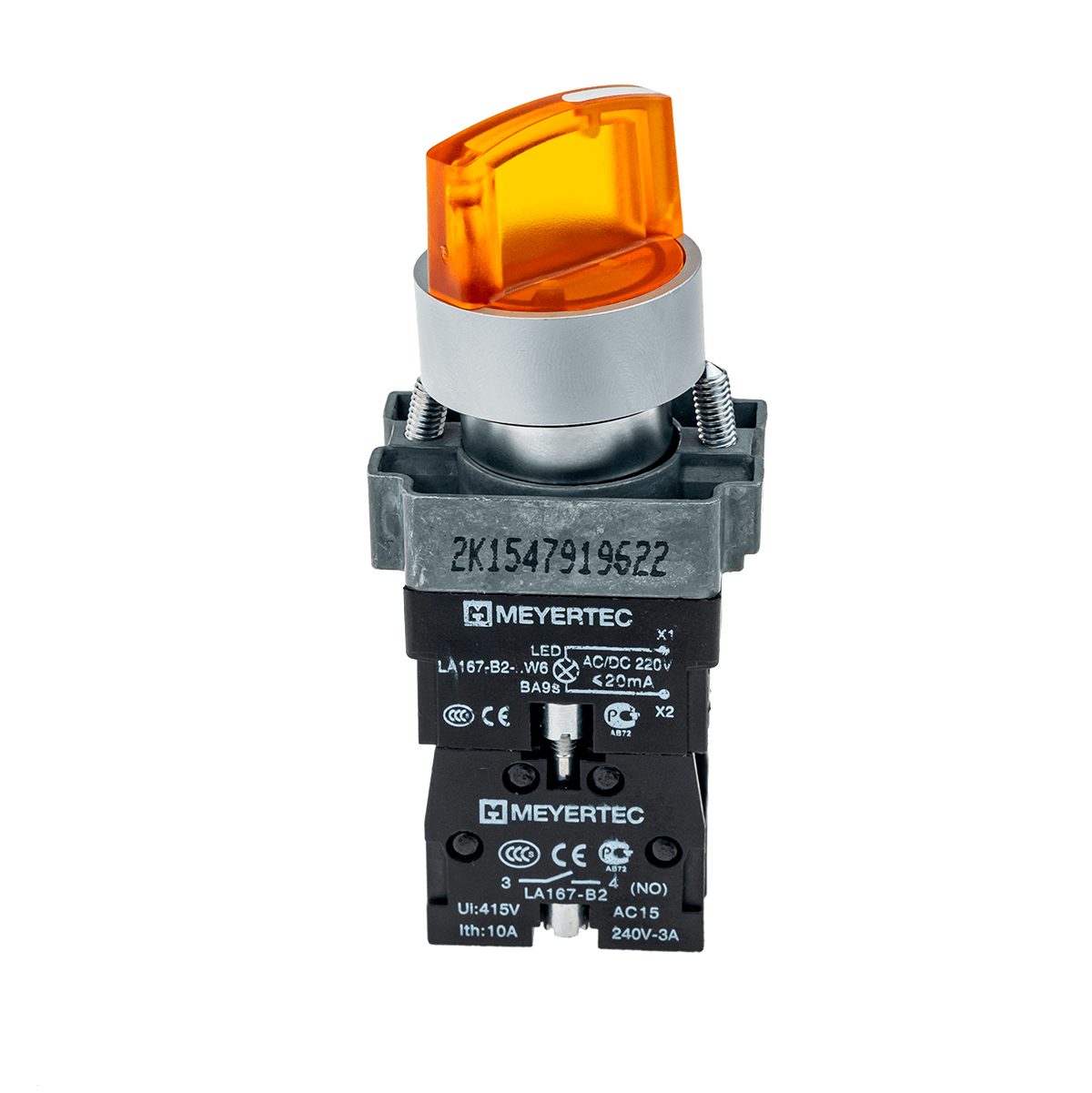 Переключатель с подсветкой, с фиксацией, 220V AC/DC, желтый, 2 положения, 1NO