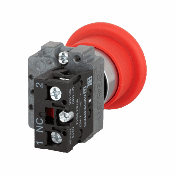 Кнопка грибовидная, возврат поворотом, 1NC красный 40 мм