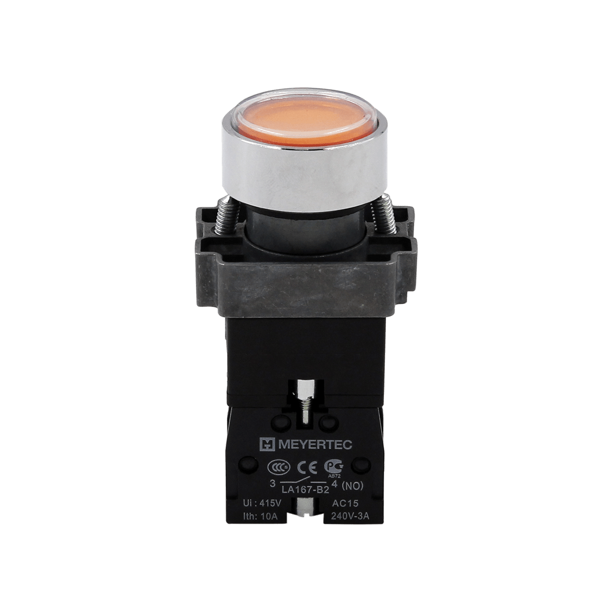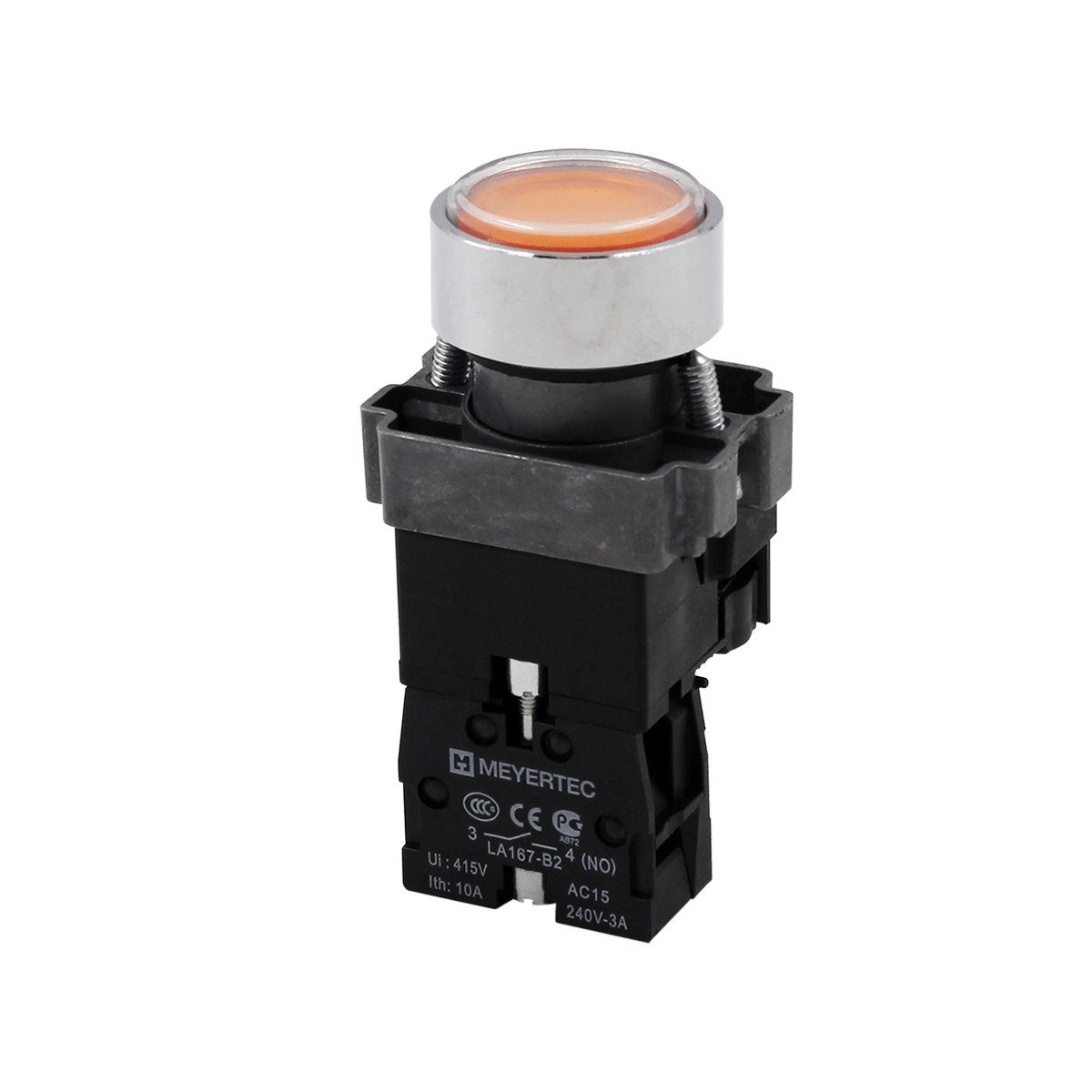 Кнопки MTB2-BWF3571 со степенью защиты IP67 предназначены для управления электромагнитными контакторами, пускателями, реле и другими вторичными цепями. Кнопки выполнены в высоком пыле- и влагозащищенном исполнении с ударопрочностью IK07.
