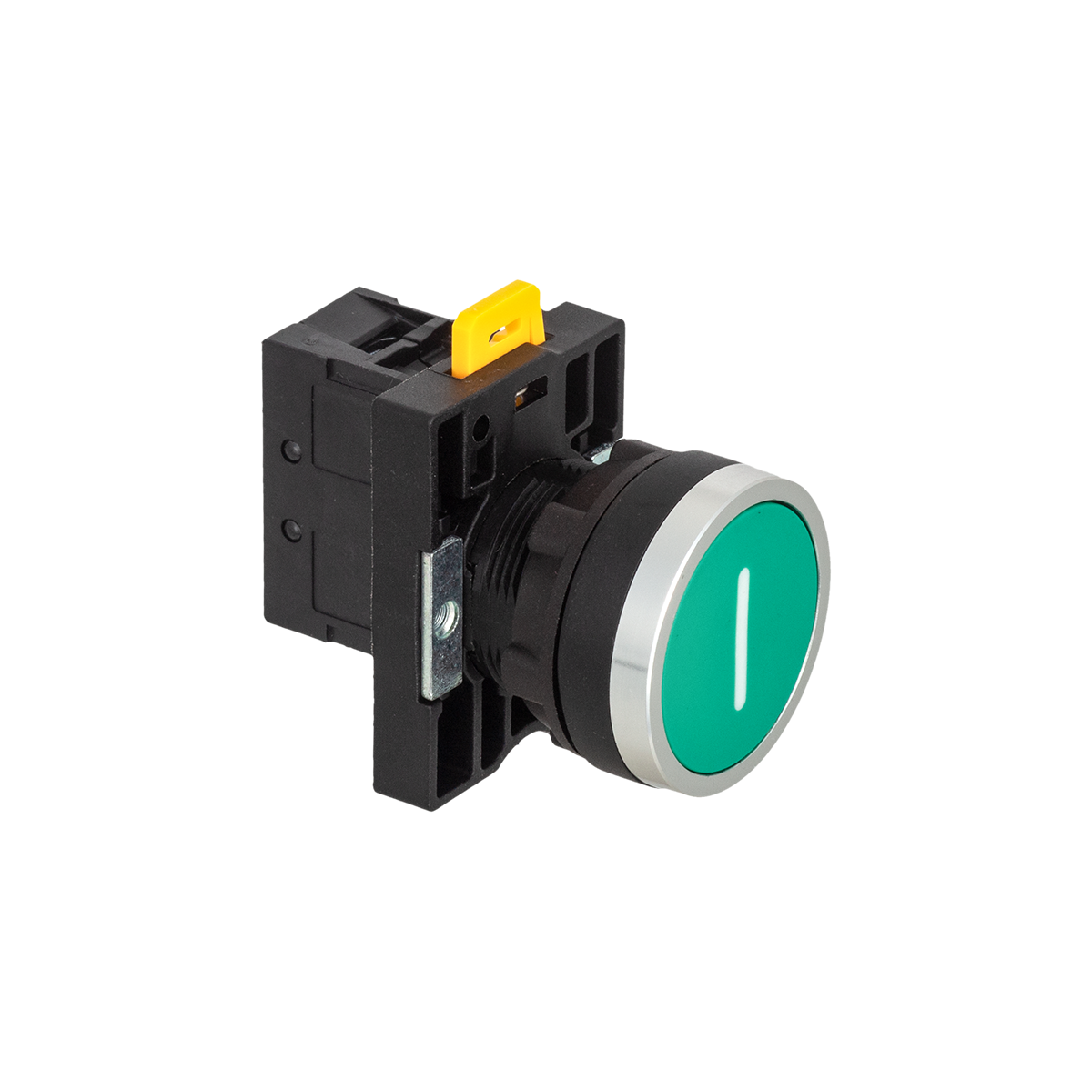 Кнопка плоская зеленая, маркировка «I», 1NO, IP54, пластик