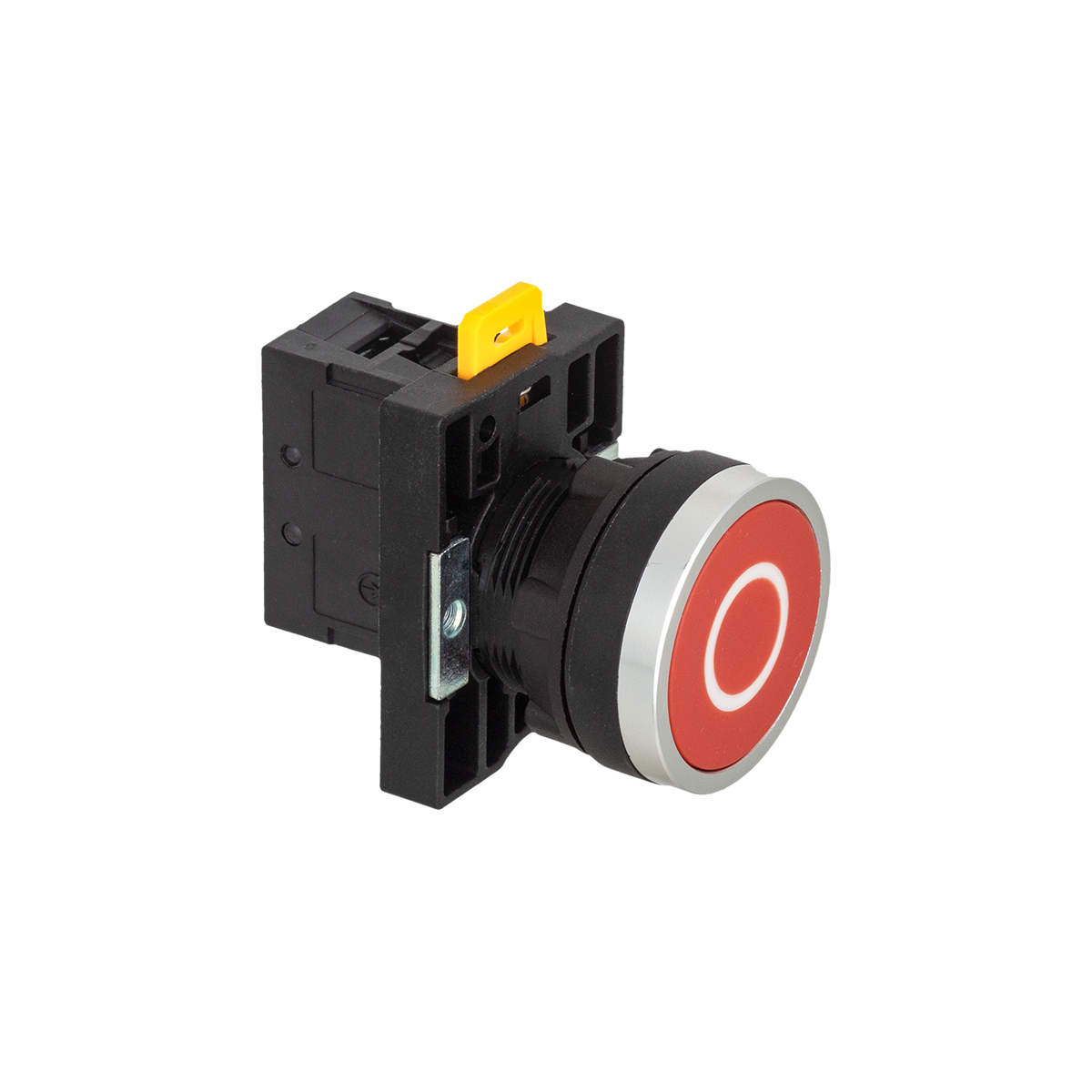 Кнопка плоская красная, маркировка «O», 1NC, IP54, пластик