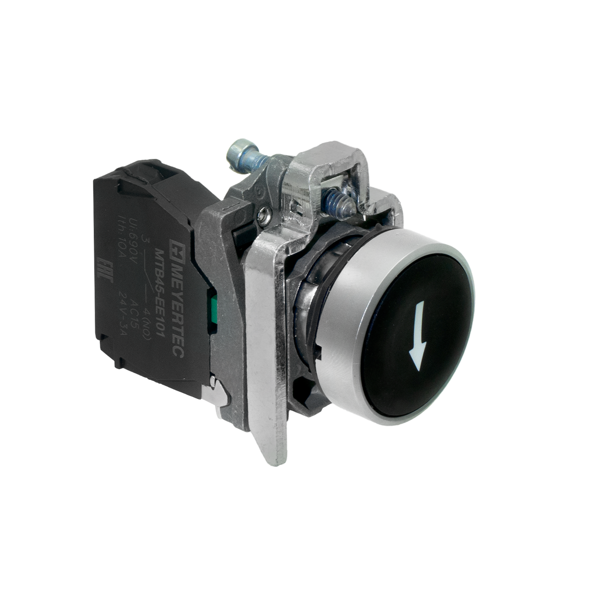 Кнопка плоская черная, маркировка «стрелка вверх», 1NO, IP65, металл