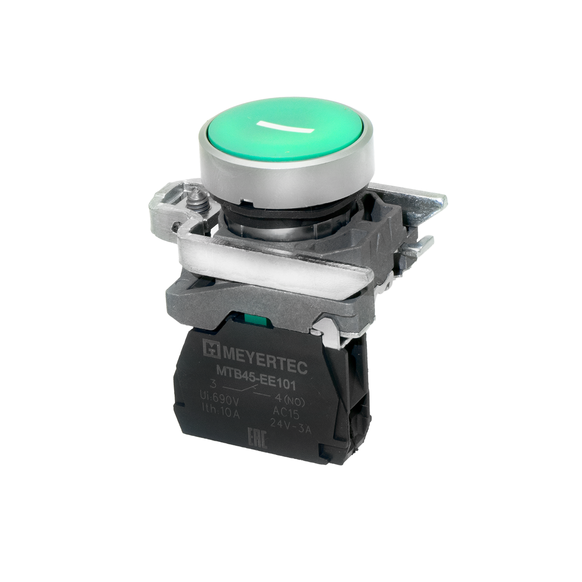Модульная серия MTB4 поставляется как в сборе (головка и основание с блок-контактами), так и отдельно компонентами. Предназначена для установки только в металлические оболочки, обеспечивающие заземление лицевой панели.