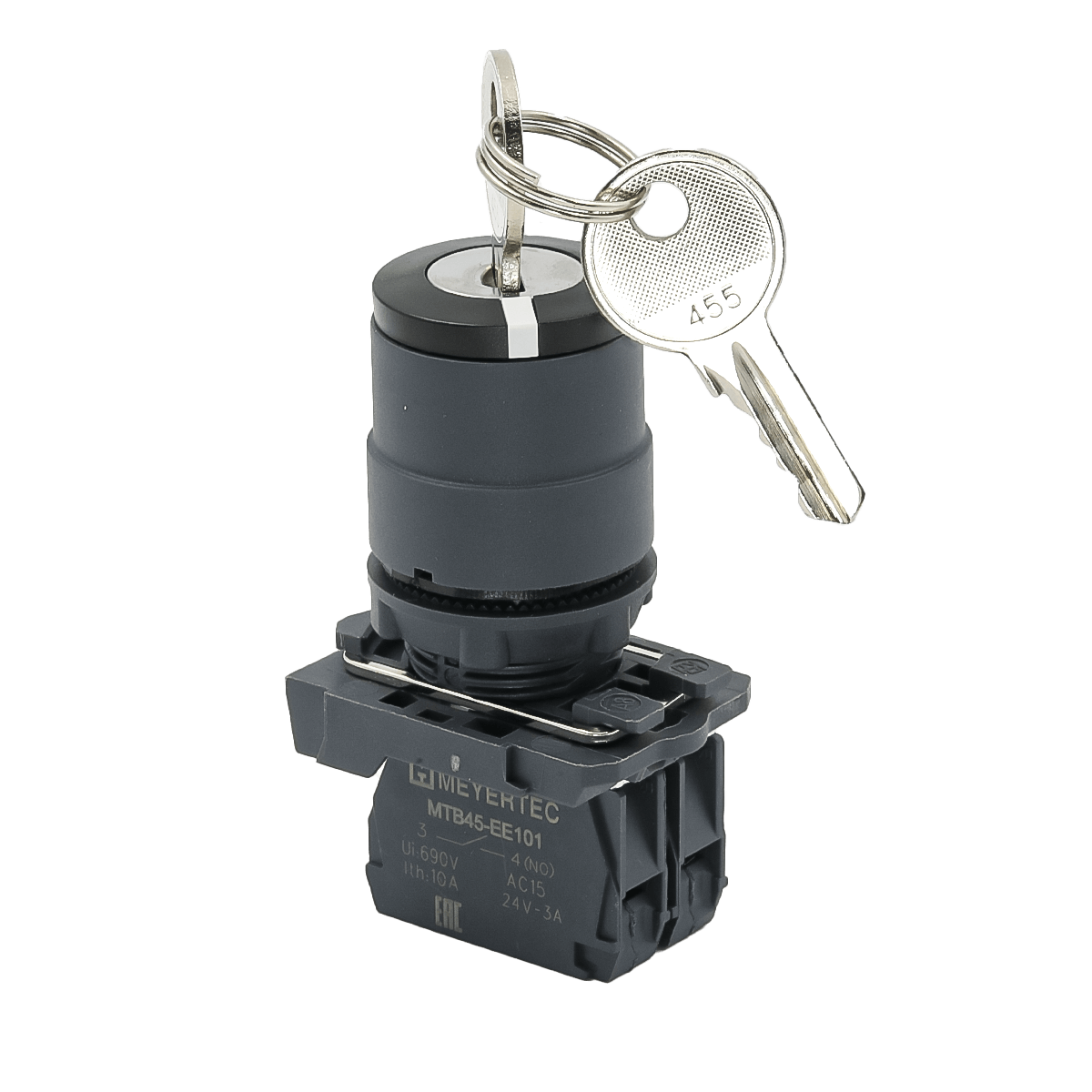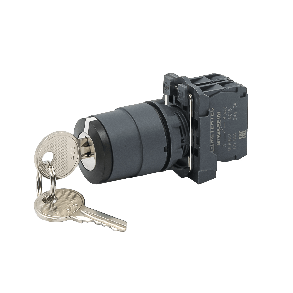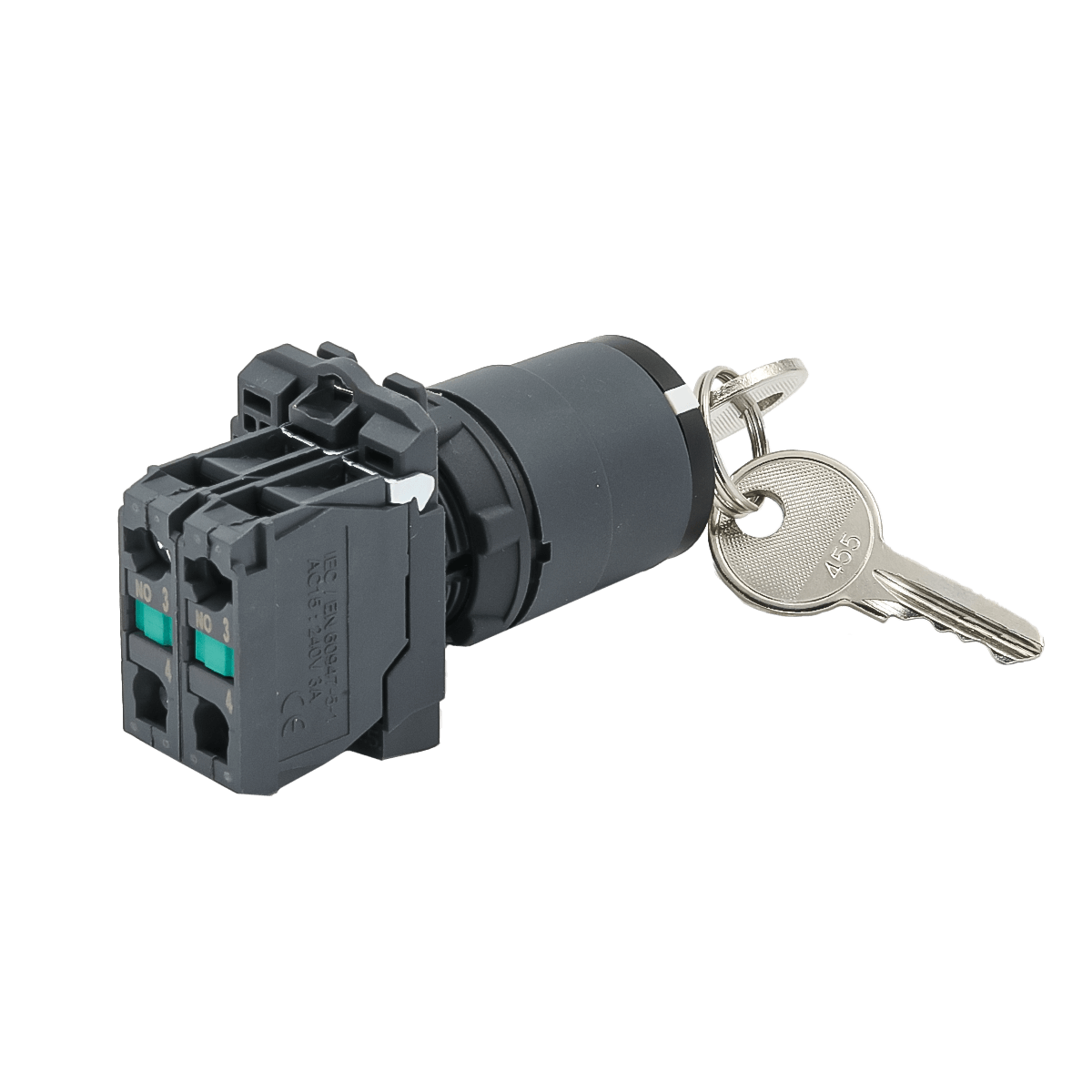 Переключатель с ключом на 3 положения с фиксацией, 3 выемки, 2NO, IP65 пластик