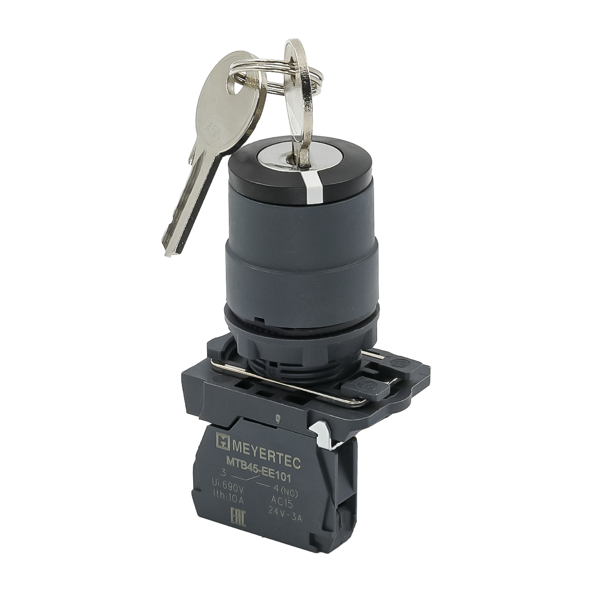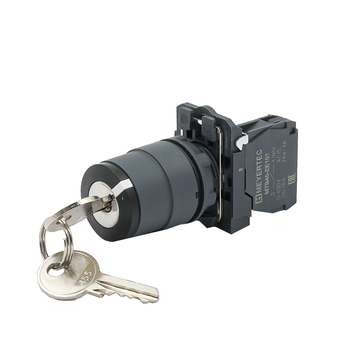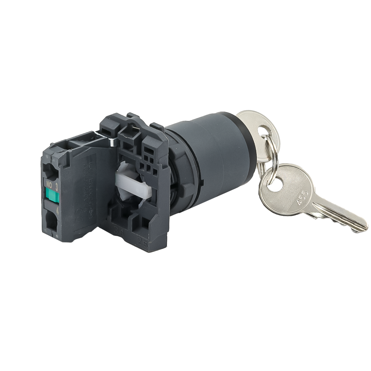 Переключатель с ключом на 2 положения с фиксацией, 1 выемка, 1NO, IP65, пластик