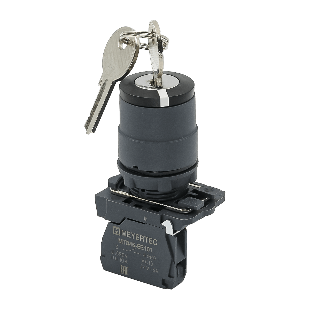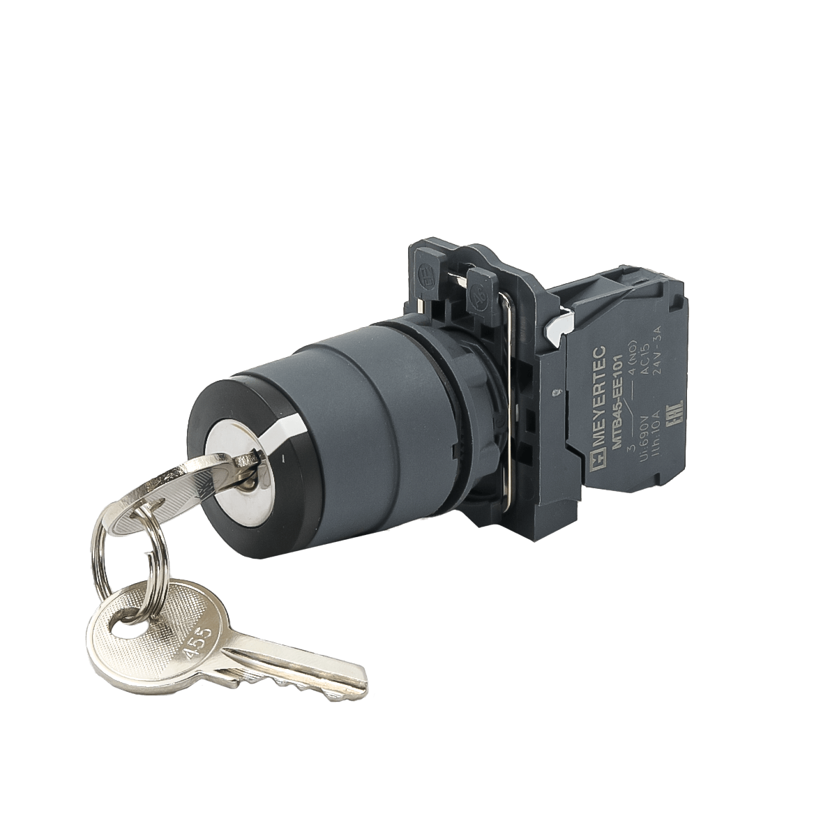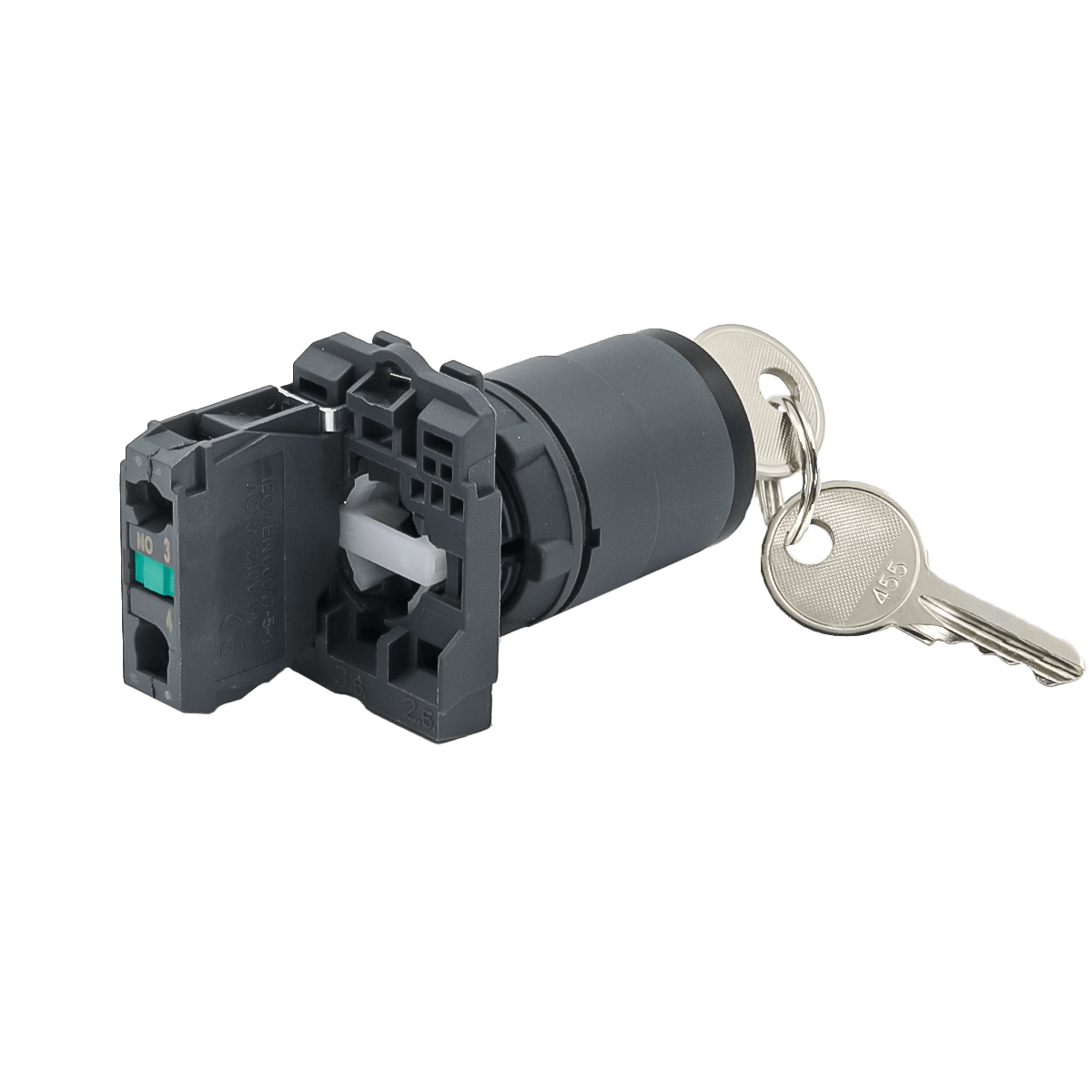 Переключатель с ключом на 2 положения с фиксацией, 2 выемки, 1NO, IP65, пластик