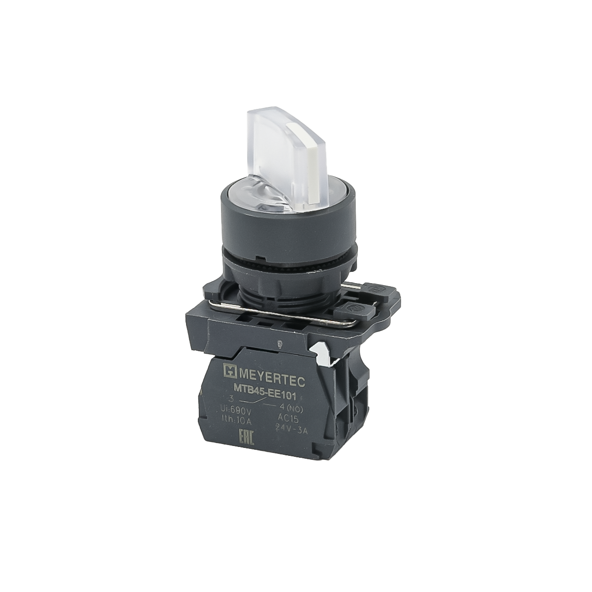 Переключатель на 2 положения с фиксацией и подсветкой, белый, 1NO, 24V AC/DC, IP65, пластик