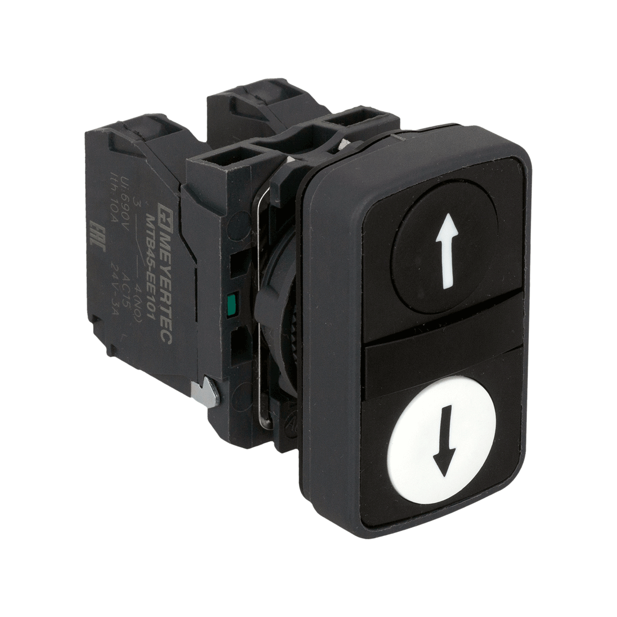 Кнопка двойная плоская, черная/белая, маркировка «стрелки вверх-вниз», 2NO, IP65, пластик