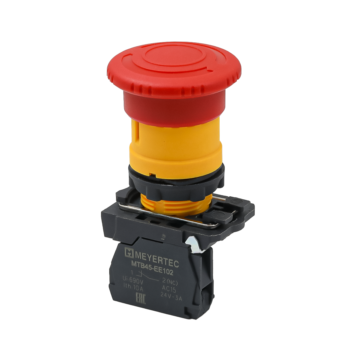 Кнопка грибовидная аварийной остановки, красная, 40 мм, возврат поворотом с фиксацией, 1NC, IP65, пластик