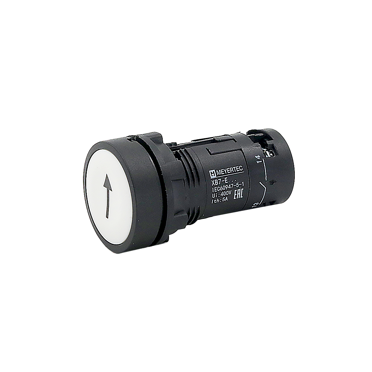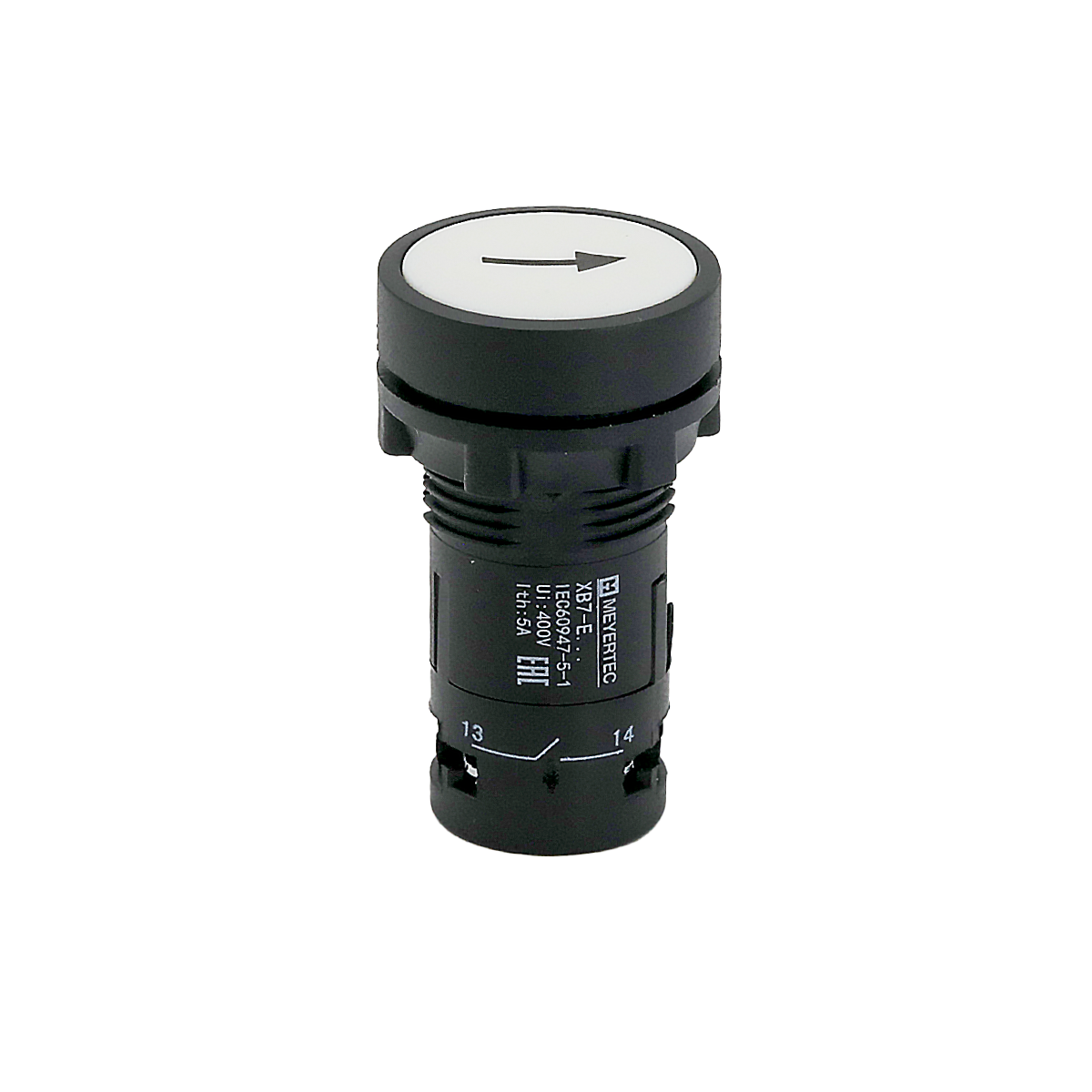 Кнопка плоская белая, маркировка «стрелка вверх», 1NO, IP54, пластик