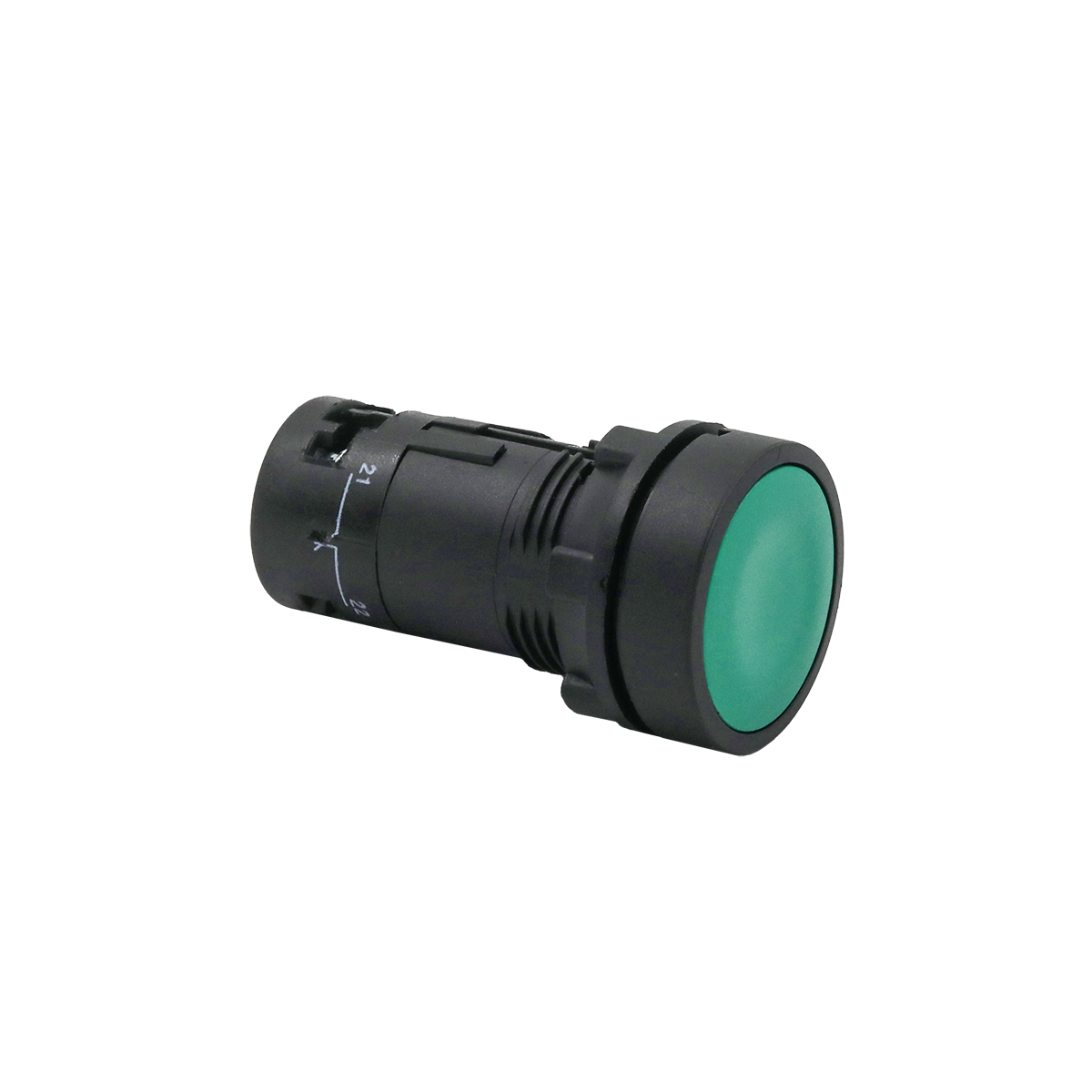 Кнопка плоская зеленая, 1NO+1NC, IP54, пластик