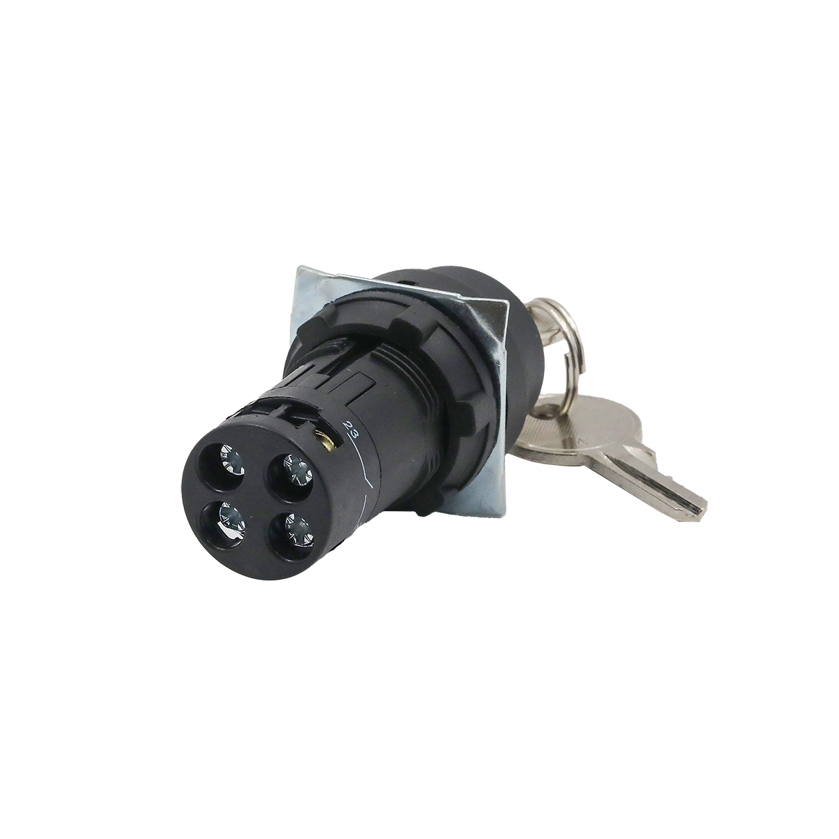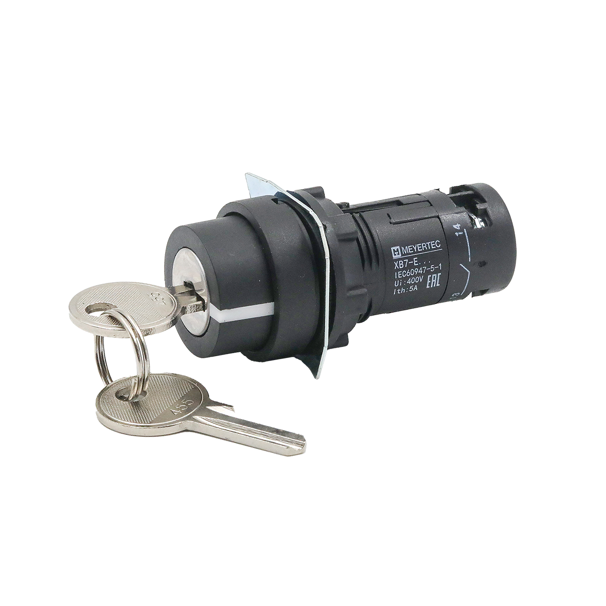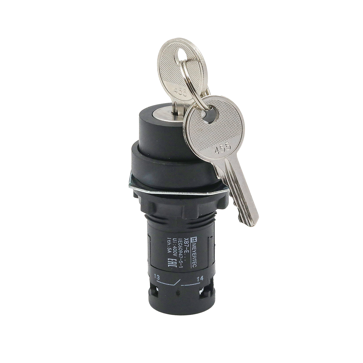 Переключатель с ключом на 3 положения с фиксацией, 1 выемка в центре, 2NO, IP54, пластик