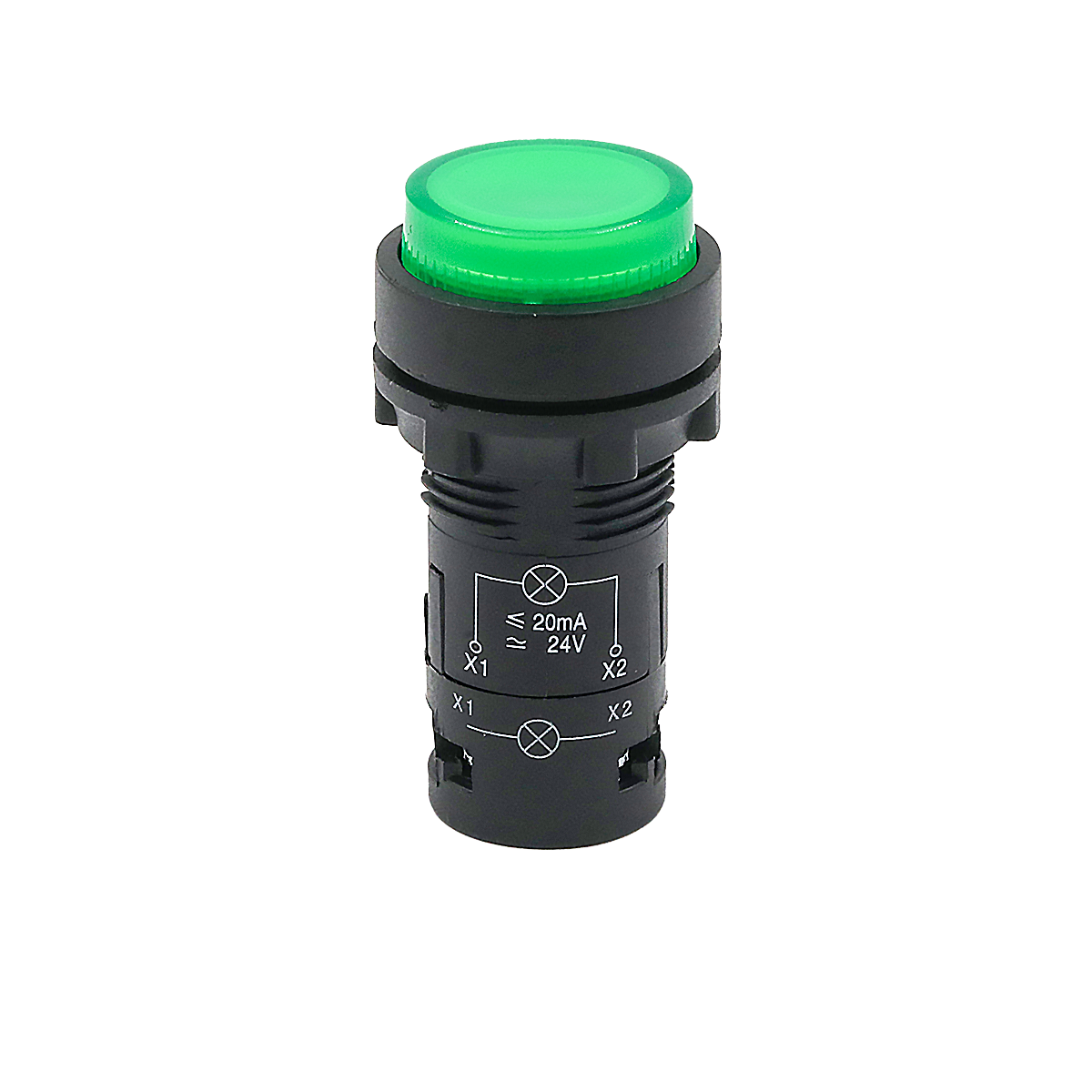 Кнопка зеленая выступающая с подсветкой, 1NO, 24V AC/DC, IP54, пластик