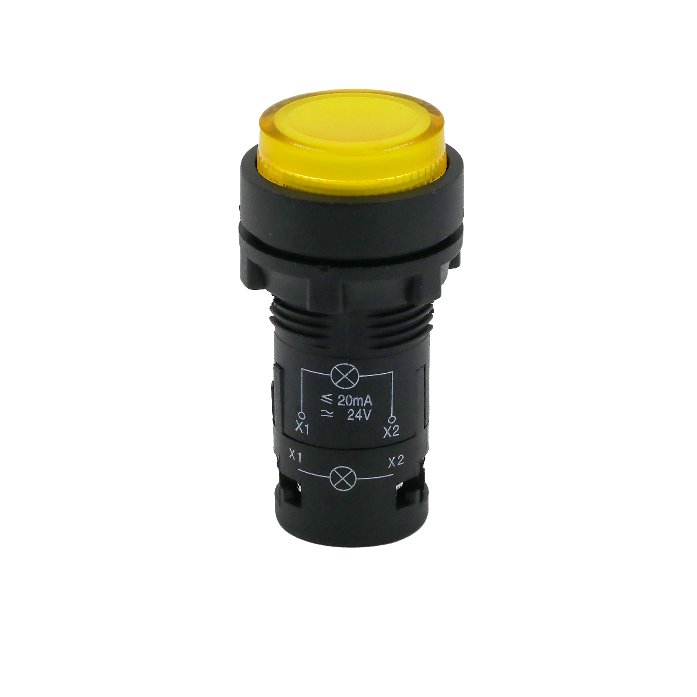 Кнопка желтая выступающая с подсветкой, 1NO, 24V AC/DC, IP54, пластик