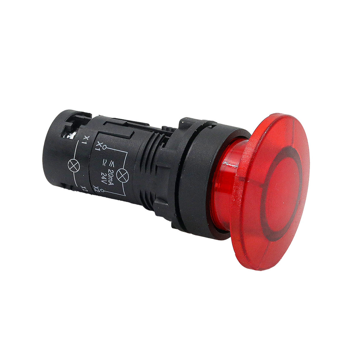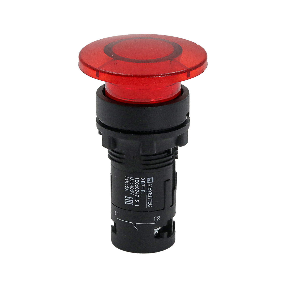 Кнопка грибовидная красная с подсветкой, Ø40 мм, 1NC, 24V AC/DC, IP54, пластик