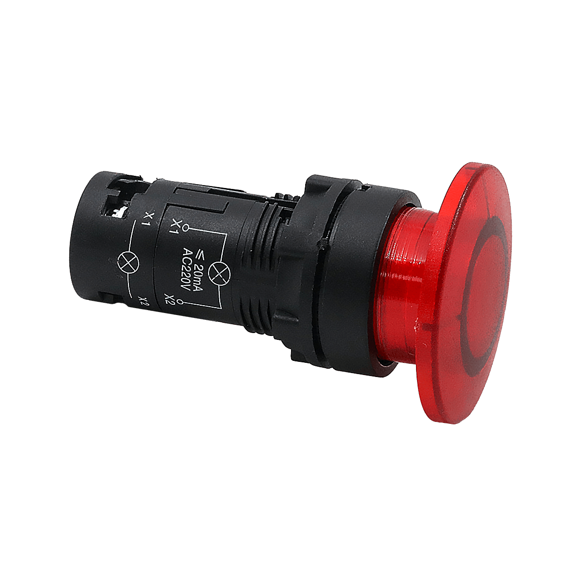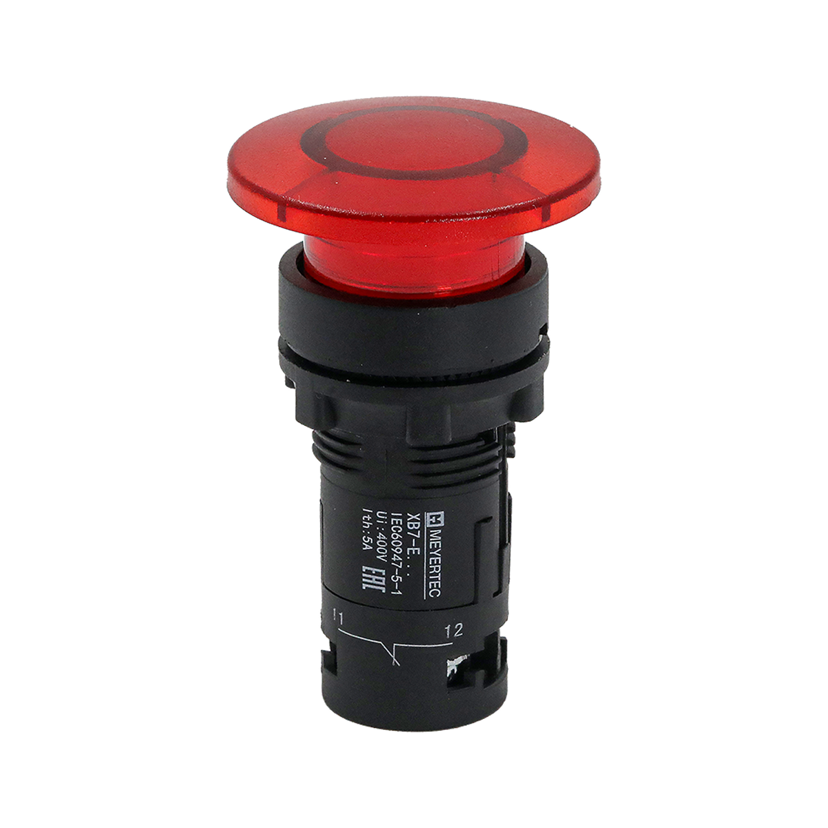 Кнопка грибовидная красная с подсветкой, Ø40 мм, 1NC, 220V AC, IP54, пластик