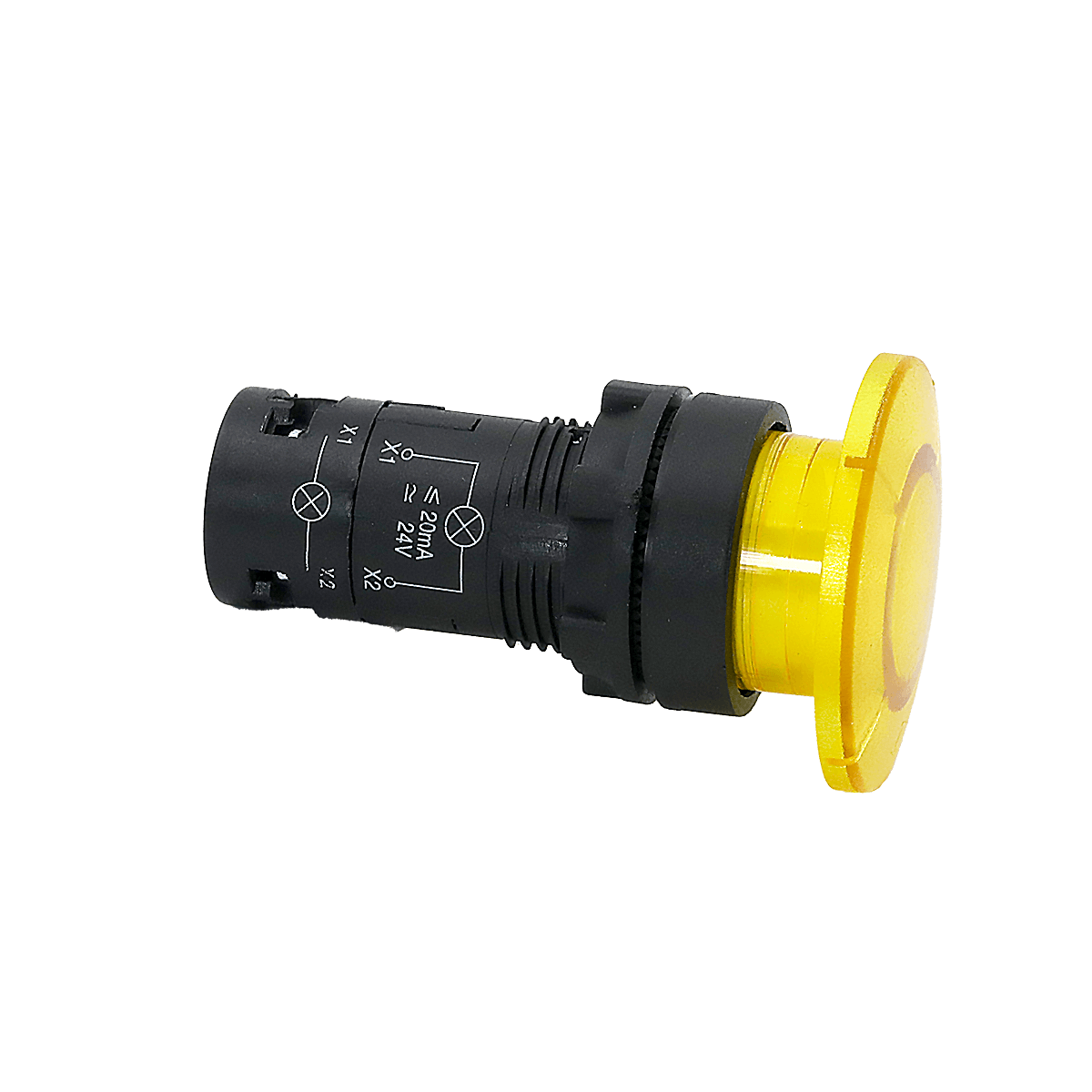 Кнопка грибовидная желтая с подсветкой, Ø40 мм, 1NO, 24V AC/DC, IP54, пластик
