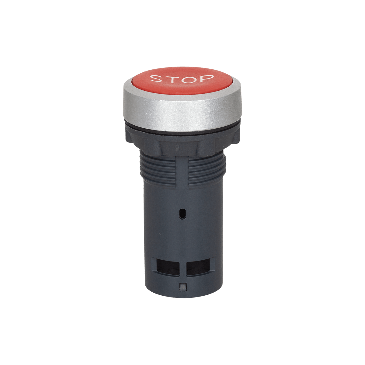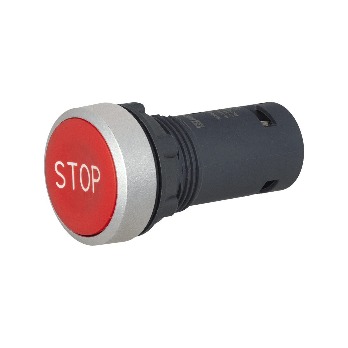 Кнопка плоская красная, маркировка «STOP», 1NC, IP65, пластик