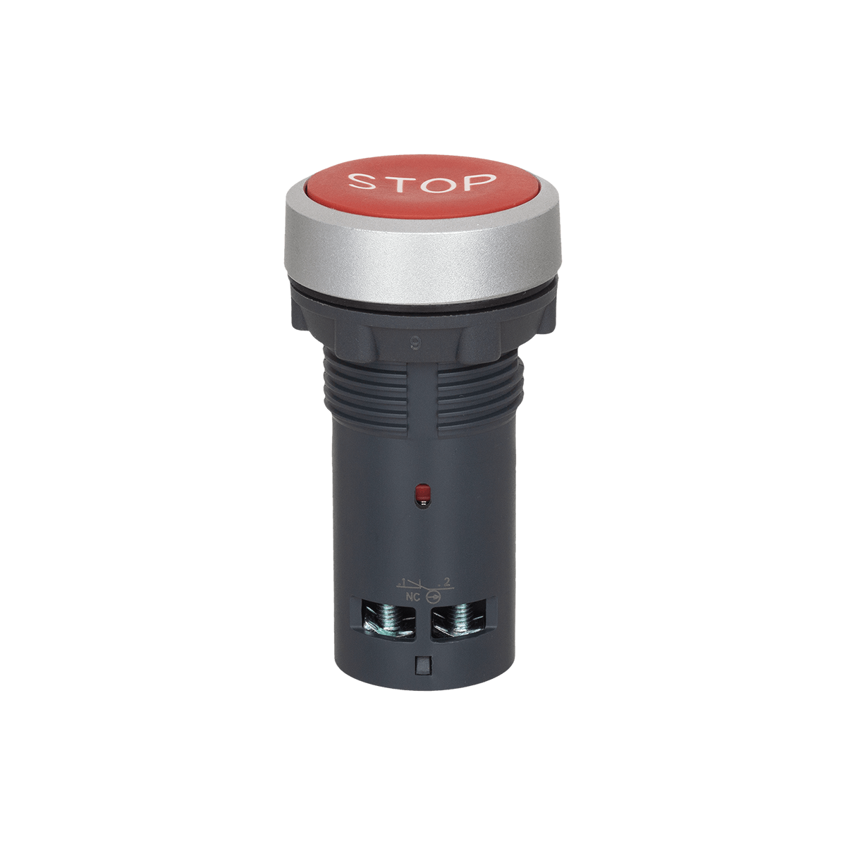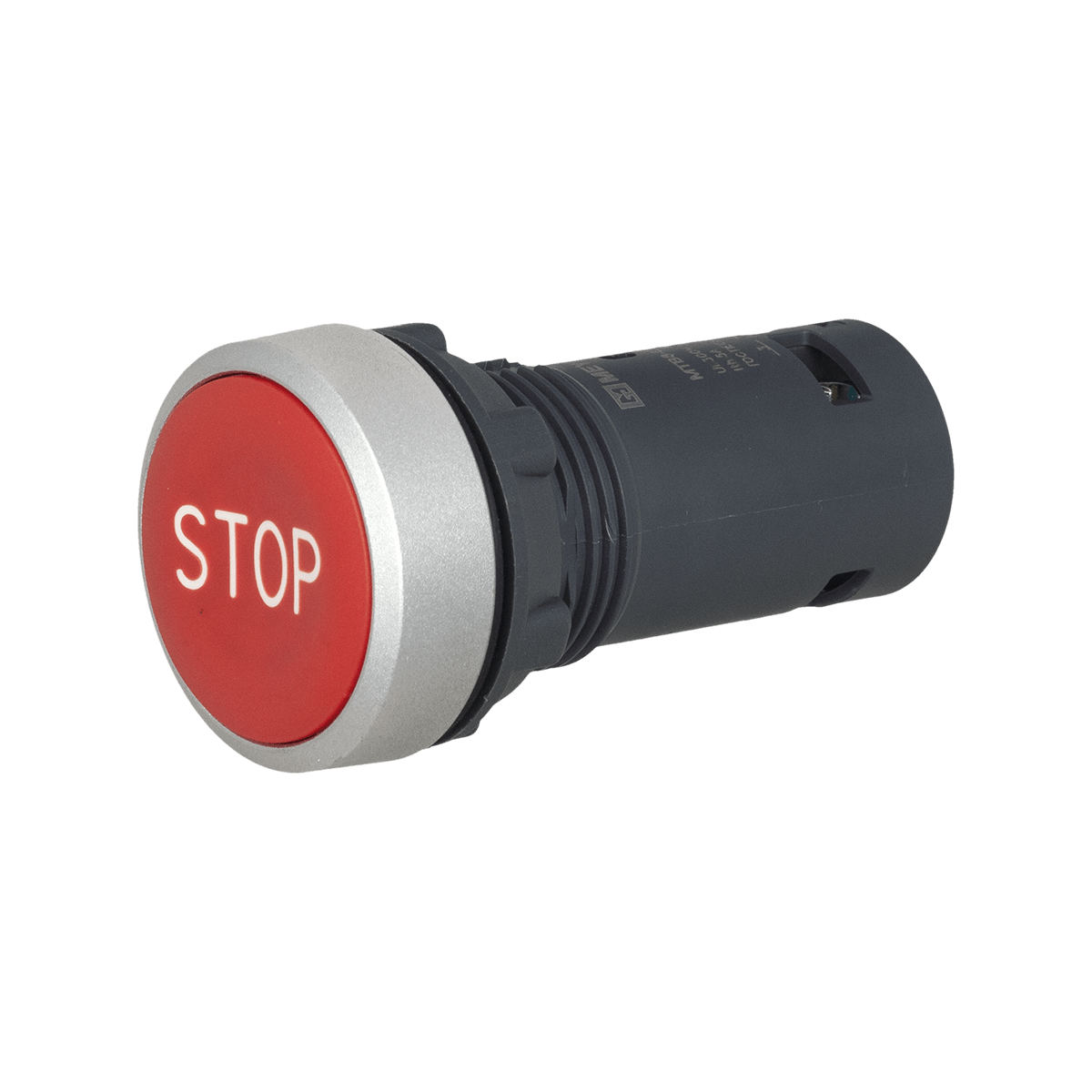 Кнопка плоская красная, маркировка «STOP», 1NO+1NC, IP54, пластик