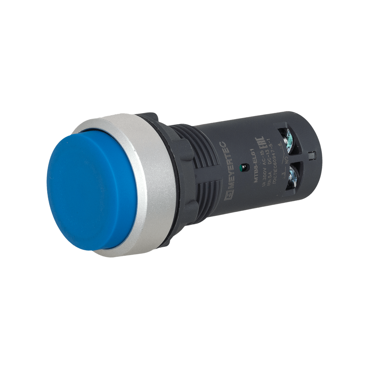 Кнопка синяя выступающая, с возвратом, 1NO, IP65, пластик