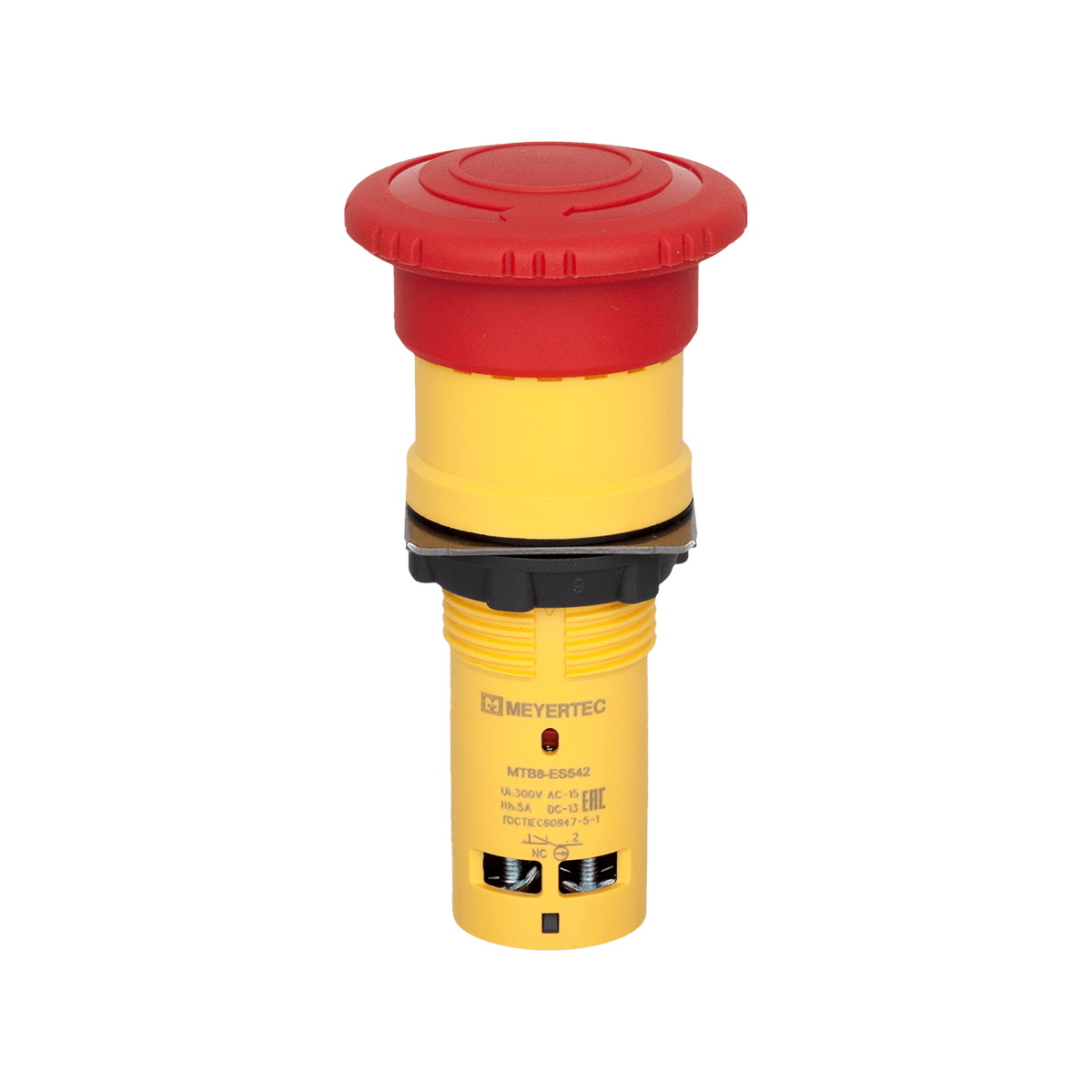 Кнопка грибовидная красная, возврат поворотом c фиксацией, Ø 40 мм, 1NC, IP65, пластик