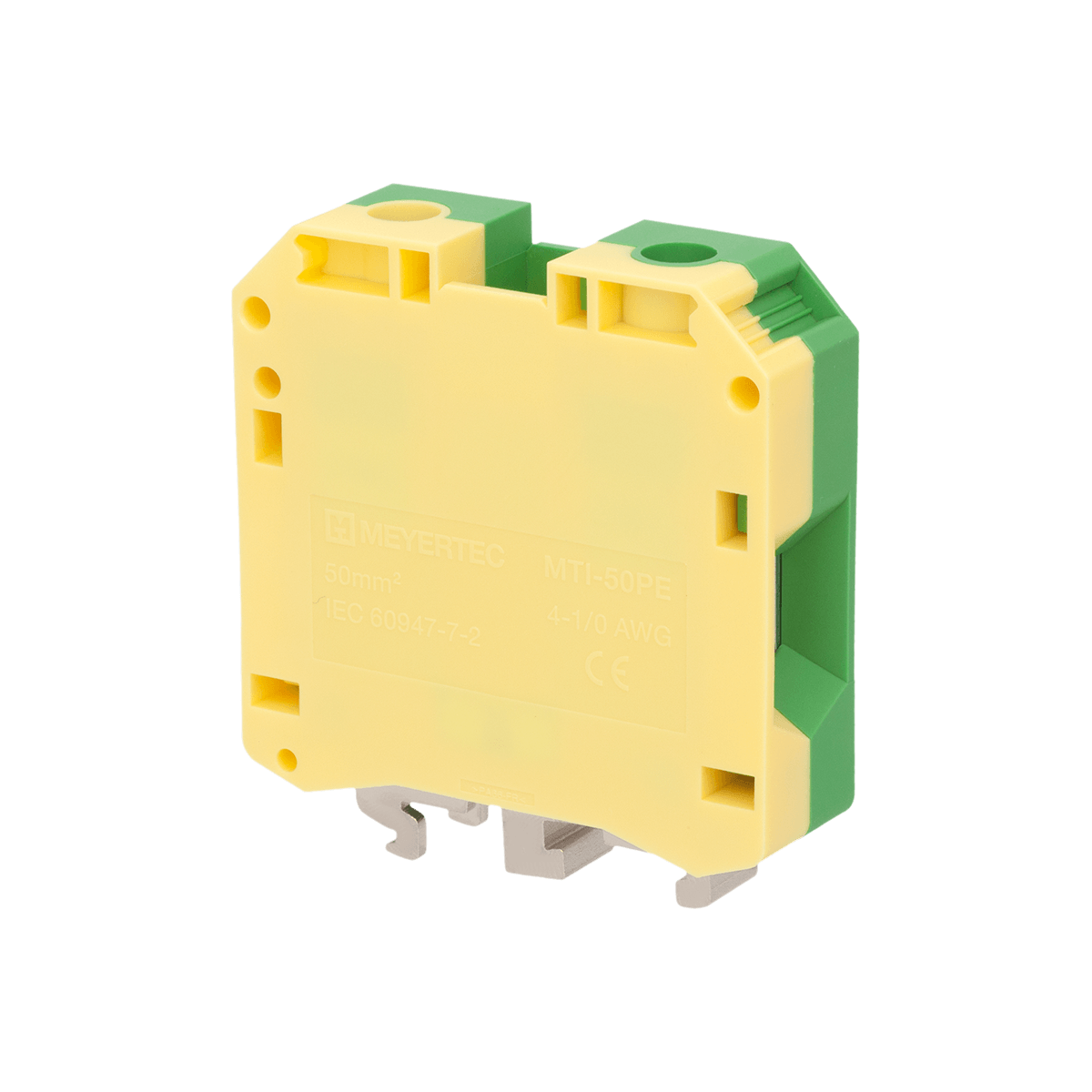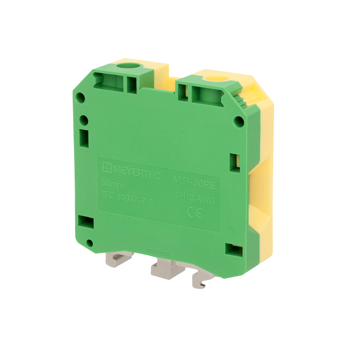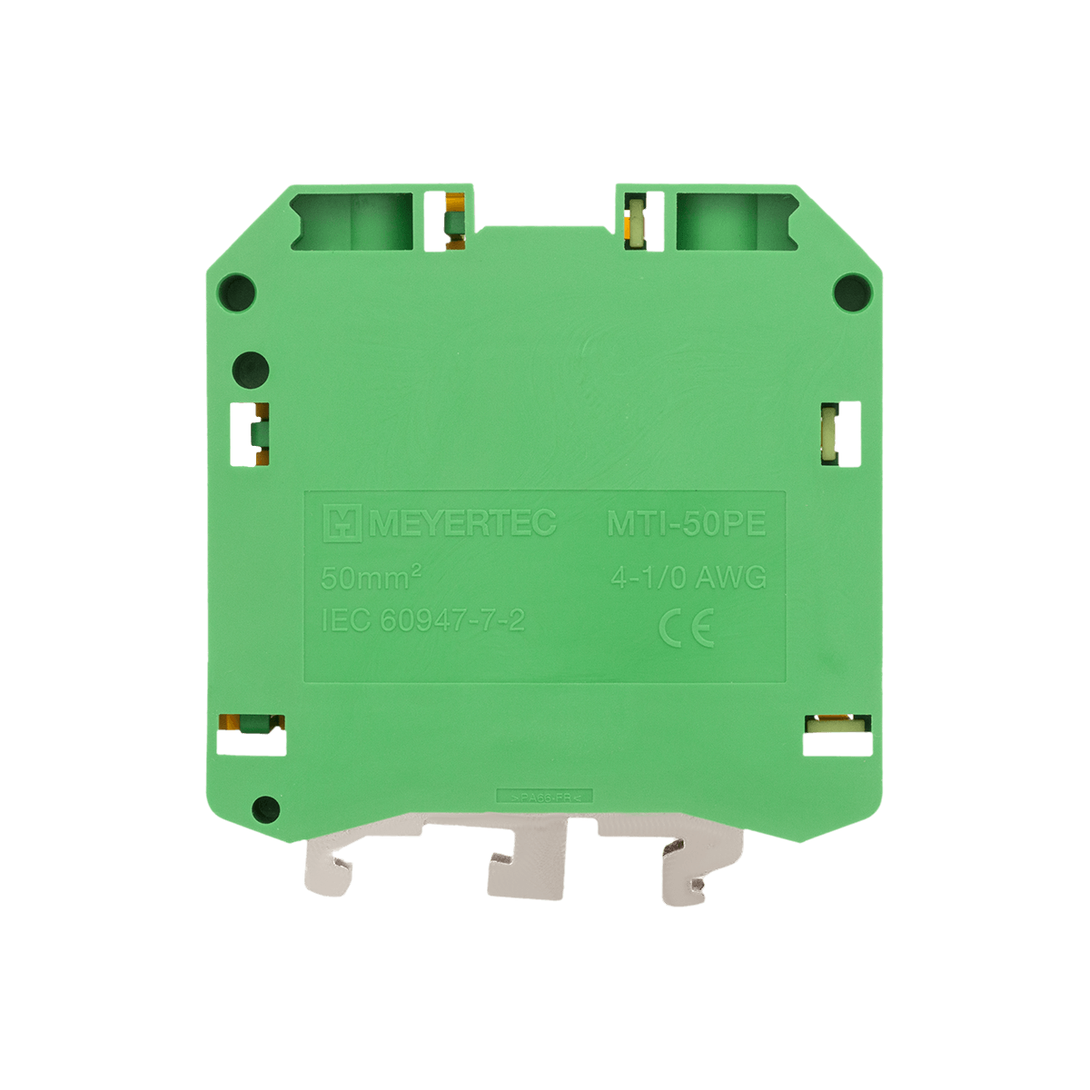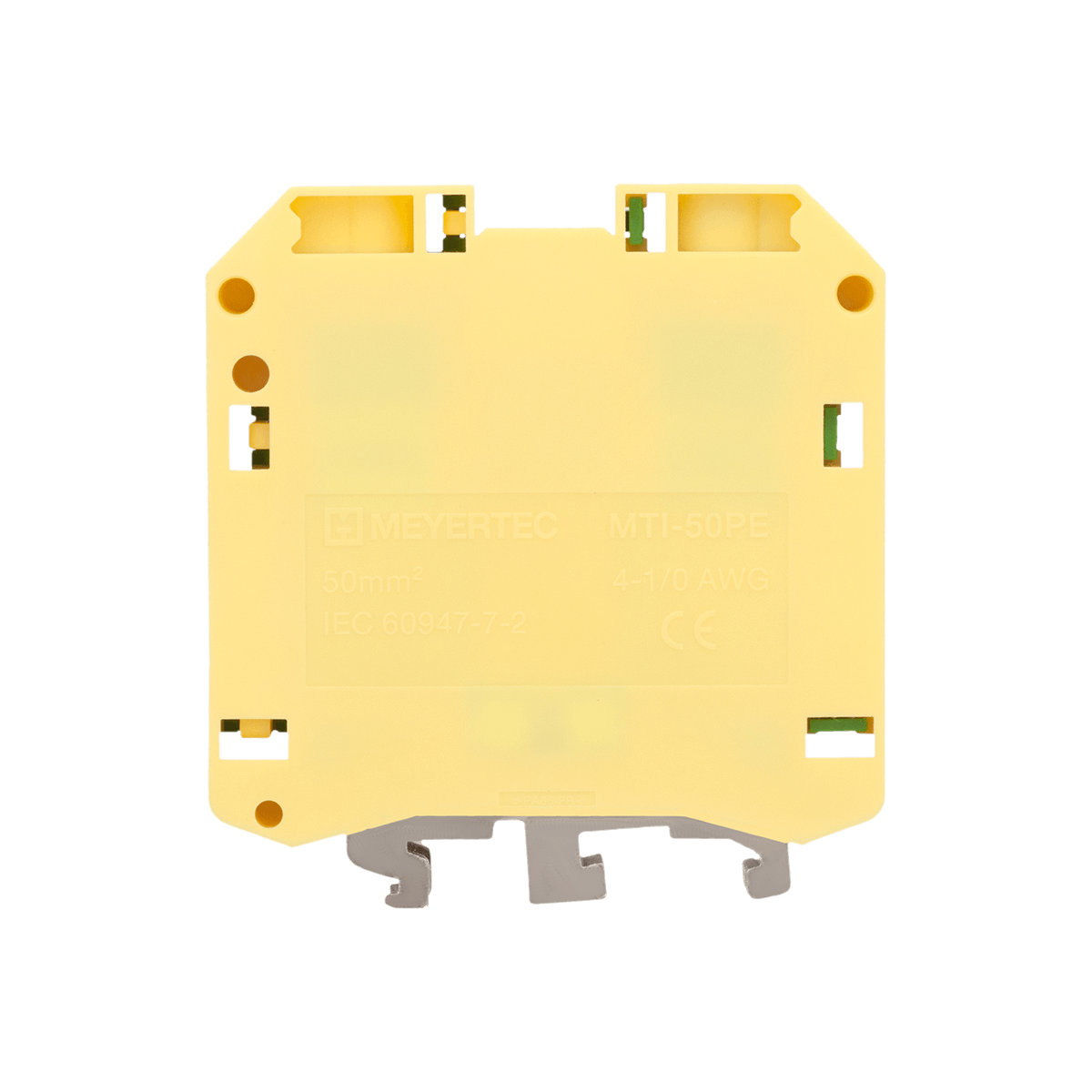 Клеммы «Земля» MTU-50PE обеспечивают заземление проводников благодаря контакту токоведущей шины с DIN-рейкой (при условии заземления монтажной пластины шкафа).