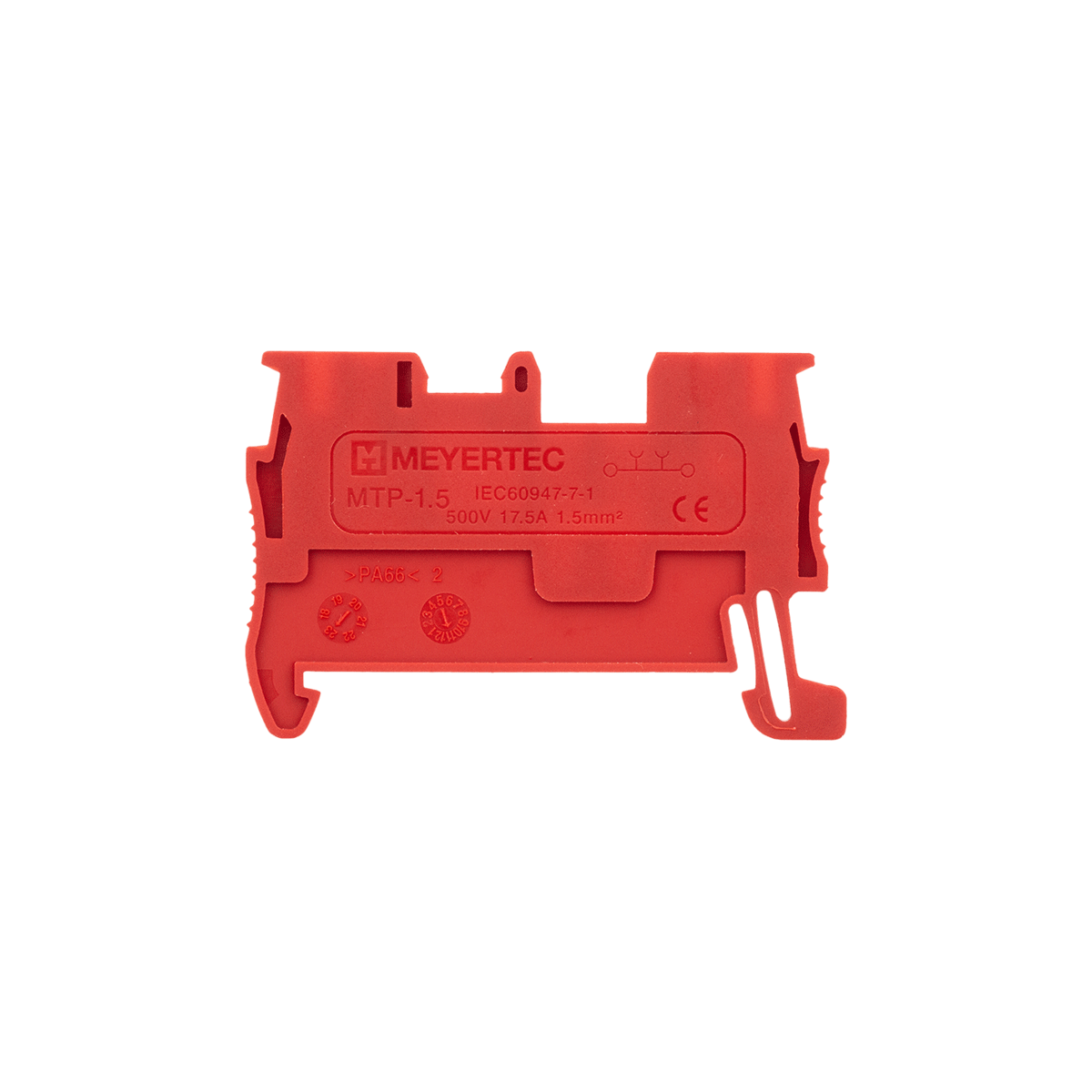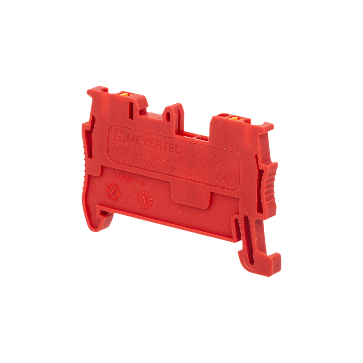 Одноуровневые push-in клеммы MTP-1.5RD предназначены для быстрого и удобного подключения проводников без использования специального инструмента. Клеммы обеспечивают безопасное и надежное соединение проводников сечением 1,5 мм². Рекомендуются для применения в шкафах управления и автоматизации с большим количеством сигналов.