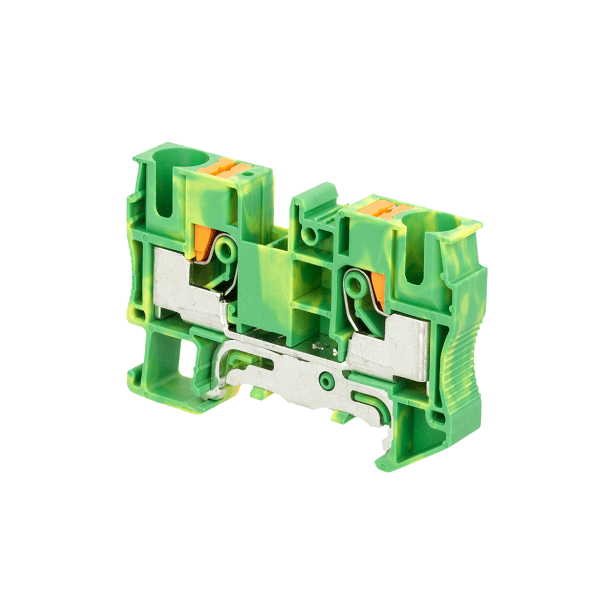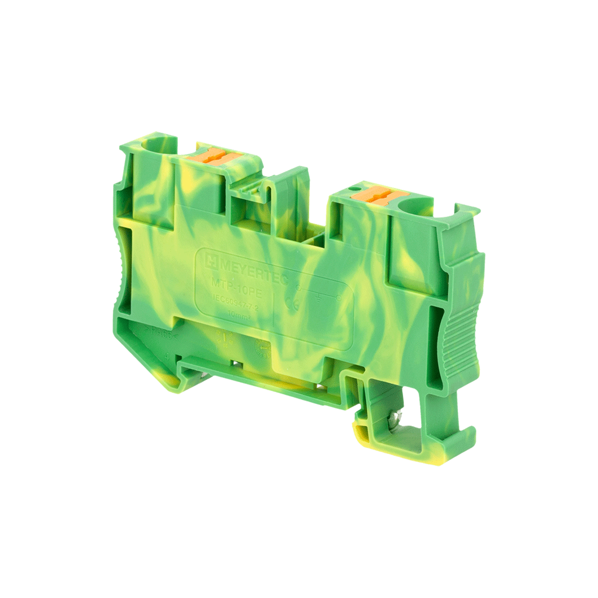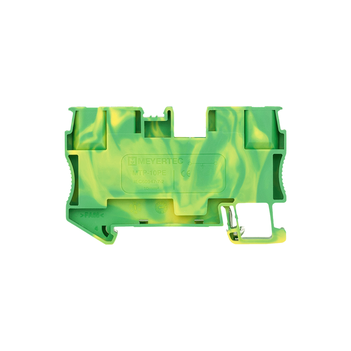 Заземляющие push-in клеммы MTP-10PE применяются для подключения защитных заземляющих проводников. Клемма фиксируется на DIN-рейке простым защелкиванием без использования инструментов.
