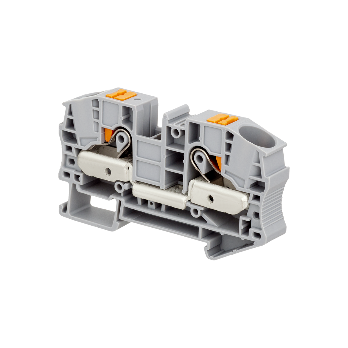 Применение клемм c технологией push-in позволяет значительно сократить время монтажа – жесткие провода и провода с кабельными наконечниками просто вставляются в контактную колодку, где зажимаются с помощью пружинного механизма.